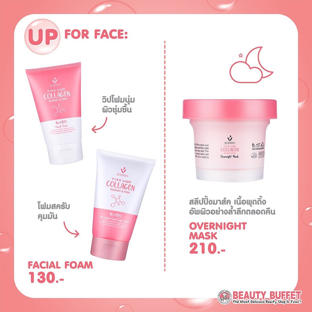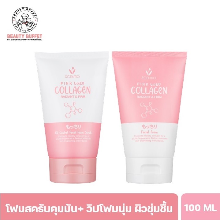 [ซื้อคู่ราคาพิเศษ] BEAUTY BUFFET SCENTIO PINK COLLAGEN RADIANT & FIRM OIL CONTROL+ FACIAL FOAM SCRUB&FACIAL FOAM