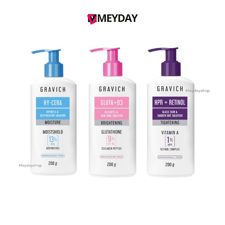 Gravich Intensive Moist Hya / Ultra Firming Retinol / Gluta Bright Complex โลชั่นบำรุงผิว กราวิช ปริมาณ 200 กรัม