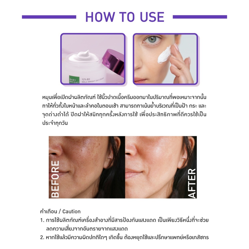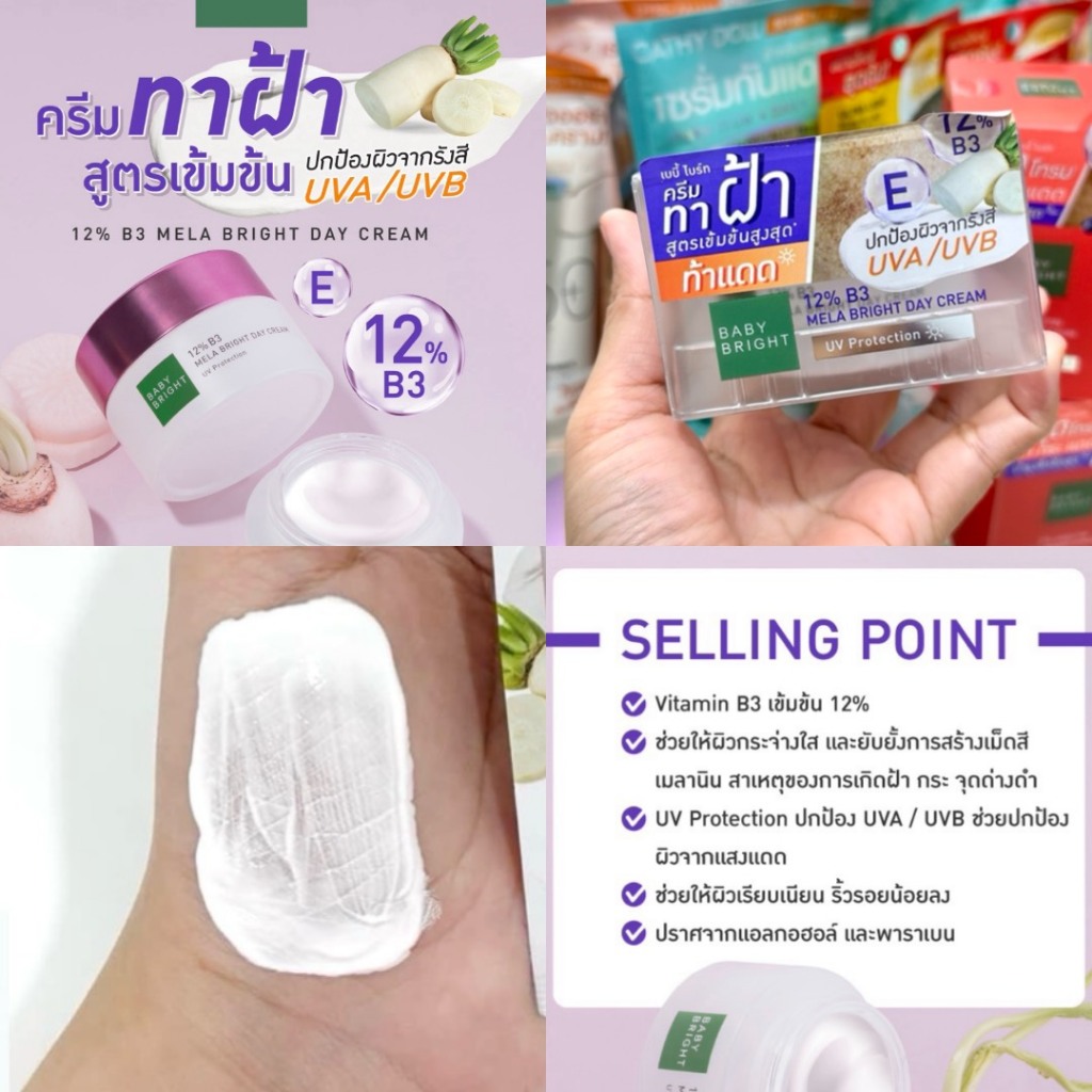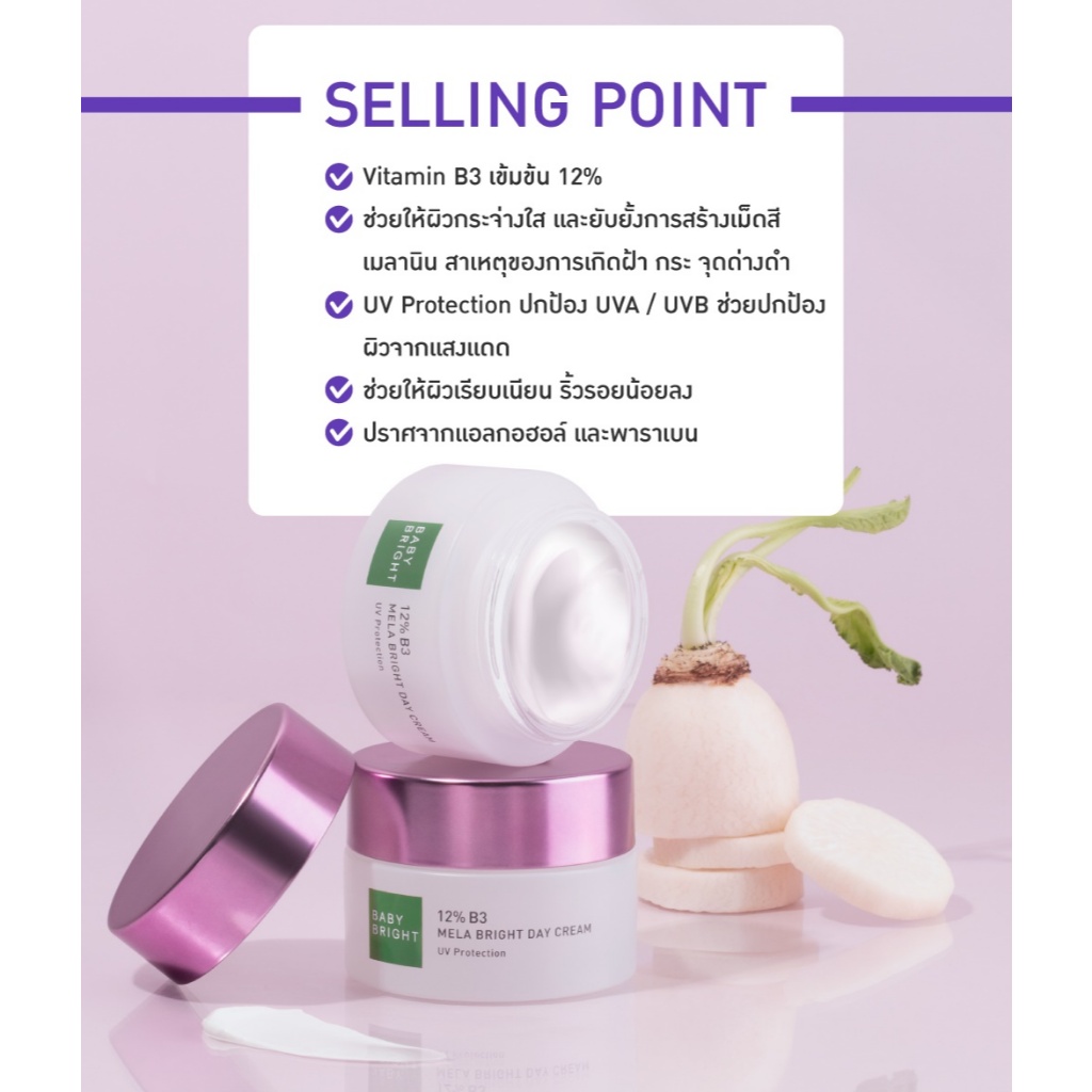 Baby Bright เมลาไบร์ทเดย์ครีม【บำรุงผิวหน้า】BABY BRIGHT 12% B3 Mela Bright Day Cream 50g