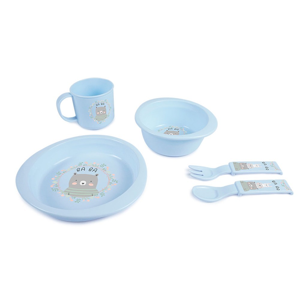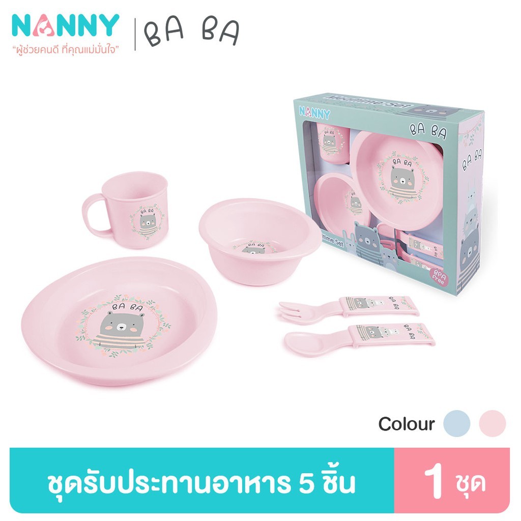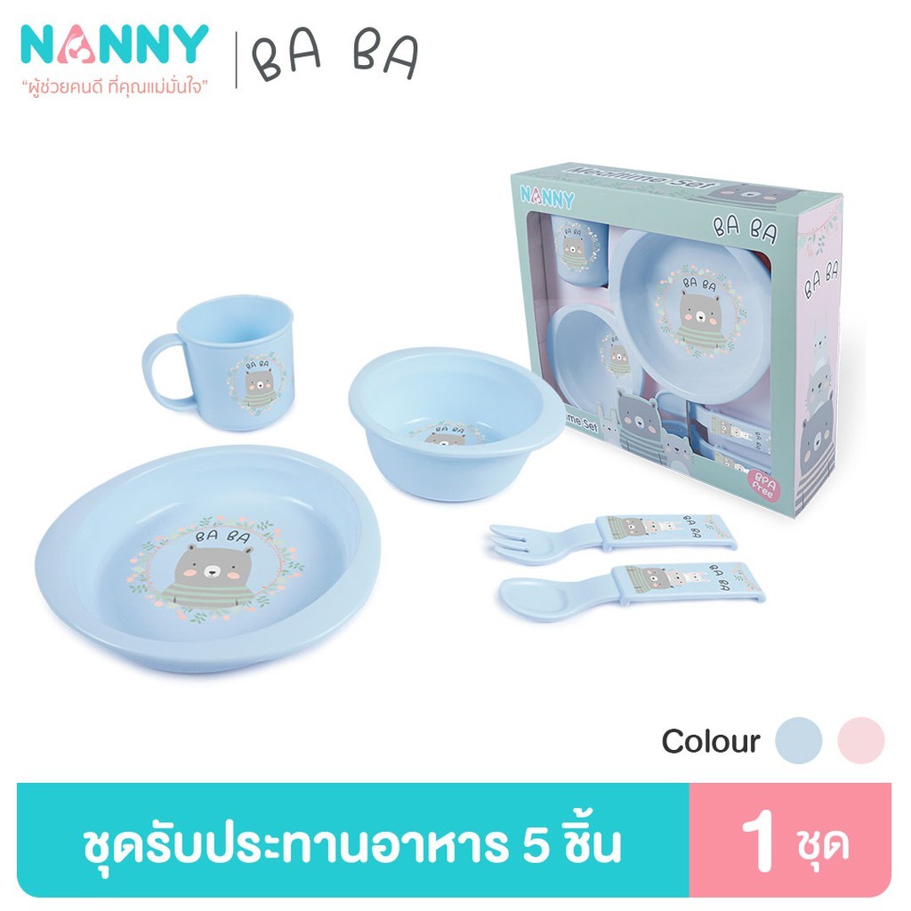 Nanny จานข้าว ชุดจานข้าวเด็ก 5 ชิ้น อุปกรณ์ทานอาหารสำหรับเด็ก เข้าไมโครเวฟได้ มี BPA Free