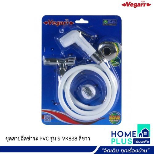 VEGARR สายฉีดชำระสีสุขภัณฑ์ พร้อมสาย PVC ถ้วยและน็อตพลาสติก ABS ชุบโครเมี่ยม สีขาว VK838 W