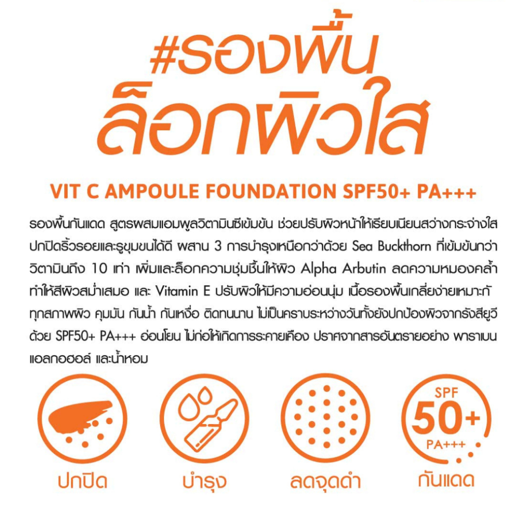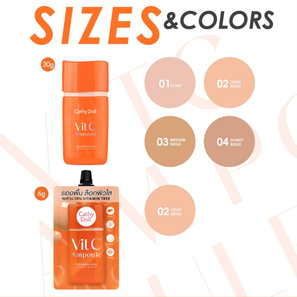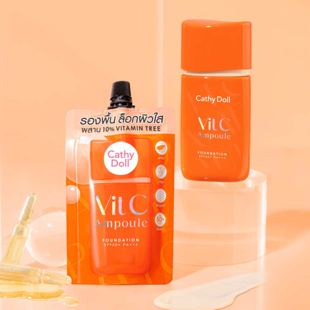 [EXP 02/2027] Cathy Doll วิตซีแอมพูลฟาวเดชั่น เอสพีเอฟ50+ พีเอ+++ 30g #รองพื้นล็อกผิวใส
