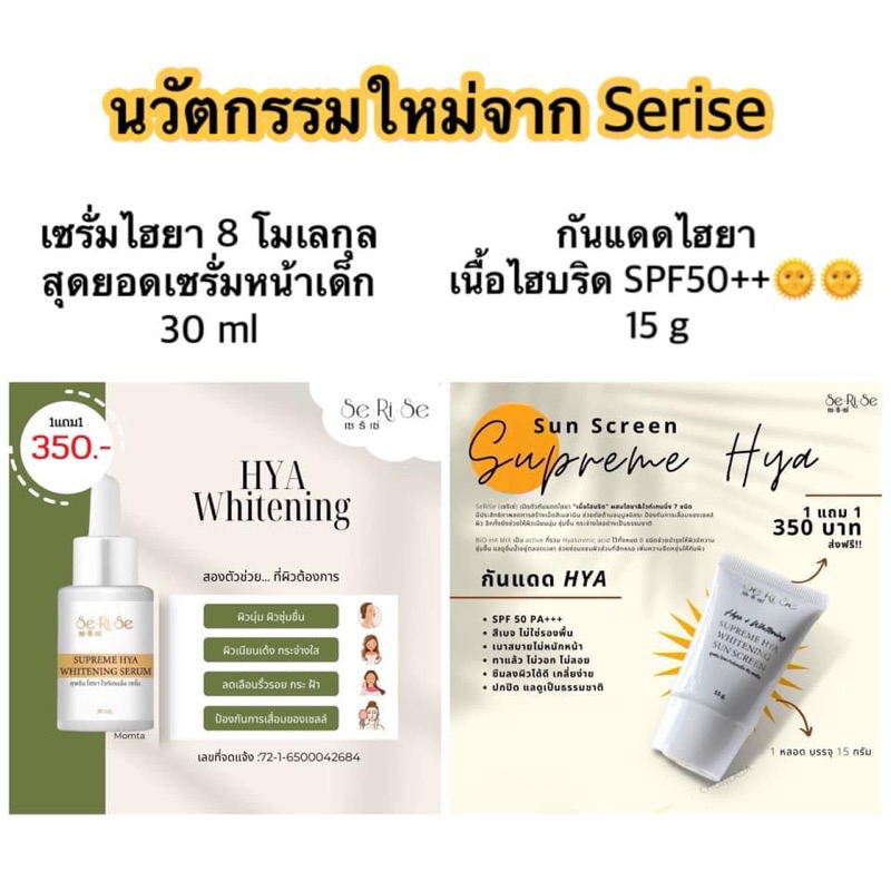 💥ของแท้ พร้อมส่ง🌸 เซรั่ม กันแดด ครีม เซริเซ่ 8โมเลกุ HYA THE SERISE Supreme Whitening serum ไฮยาลูรอน