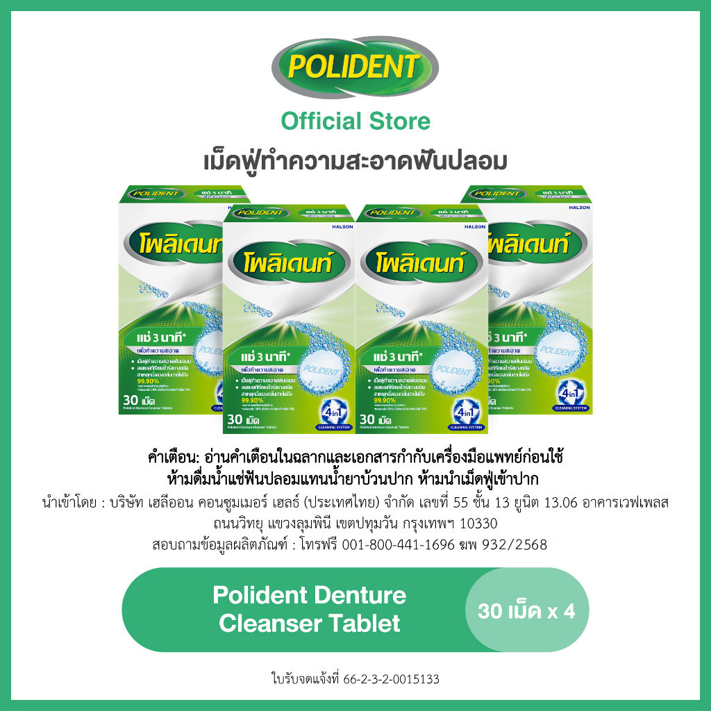 POLIDENT DENTURE CLEANSER 30'S โพลิเดนท์ เม็ดฟู่ทำความสะอาดฟันปลอม 30 เม็ด แพ็ค 4