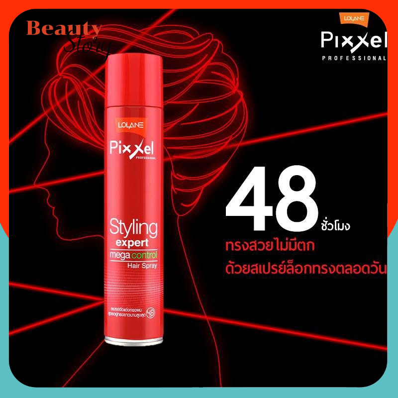 Lolane Pixxel Styling Expert Mega Control Spray โลแลน พิกเซล สเปรย์ฝุ่น* จัดแต่งทรงผม อยู่ทรงยาวนานสูงสุด 300ml ขวดฝาแดง