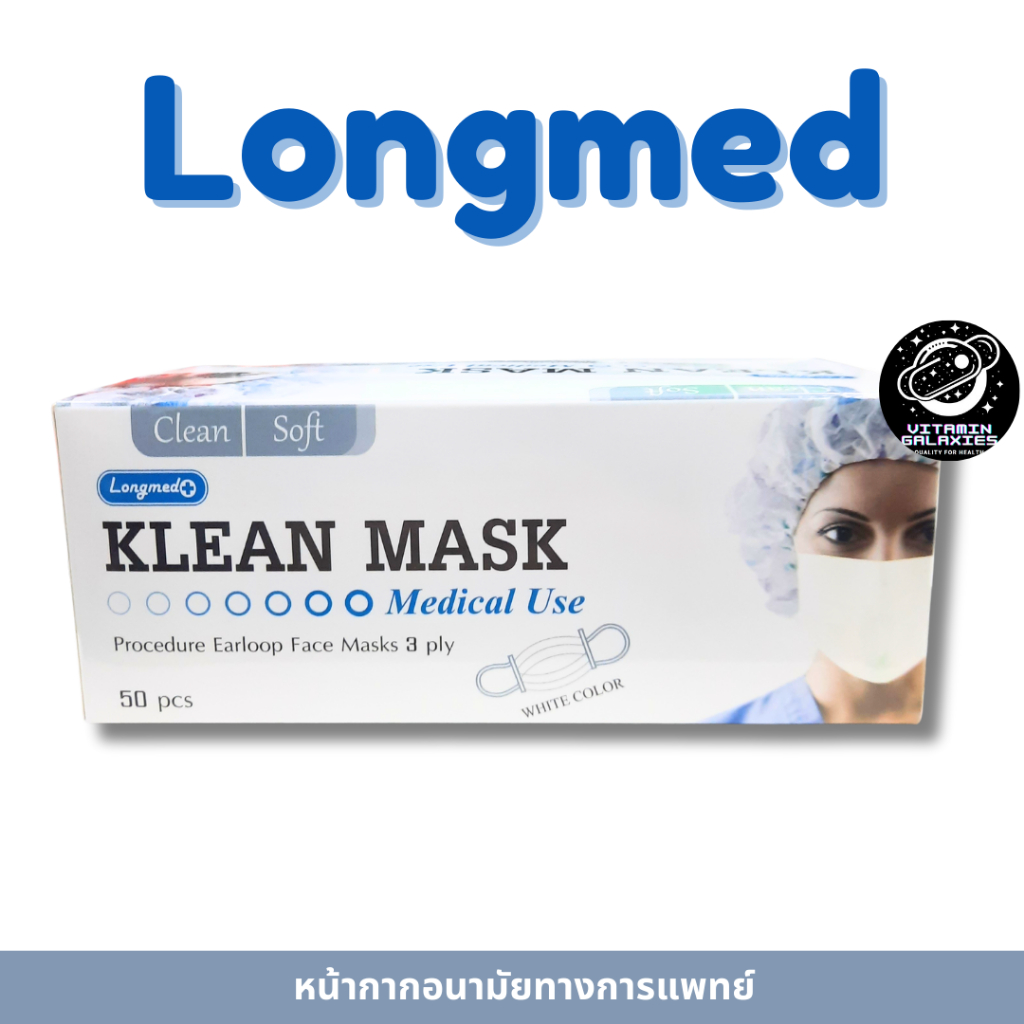LONGMED KLEAN MASK Medical หน้ากากอนามัยสีขาว (50 ชิ้น/กล่อง)