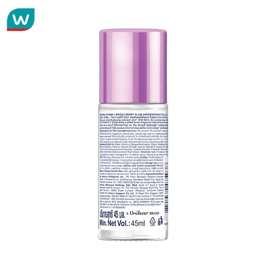 Rexona เรโซนา โรลออน วิตามิน + ไบรท์ เบอร์รี่ โกลว์ แอนติเพอสไปแรนท์ 45 มล.