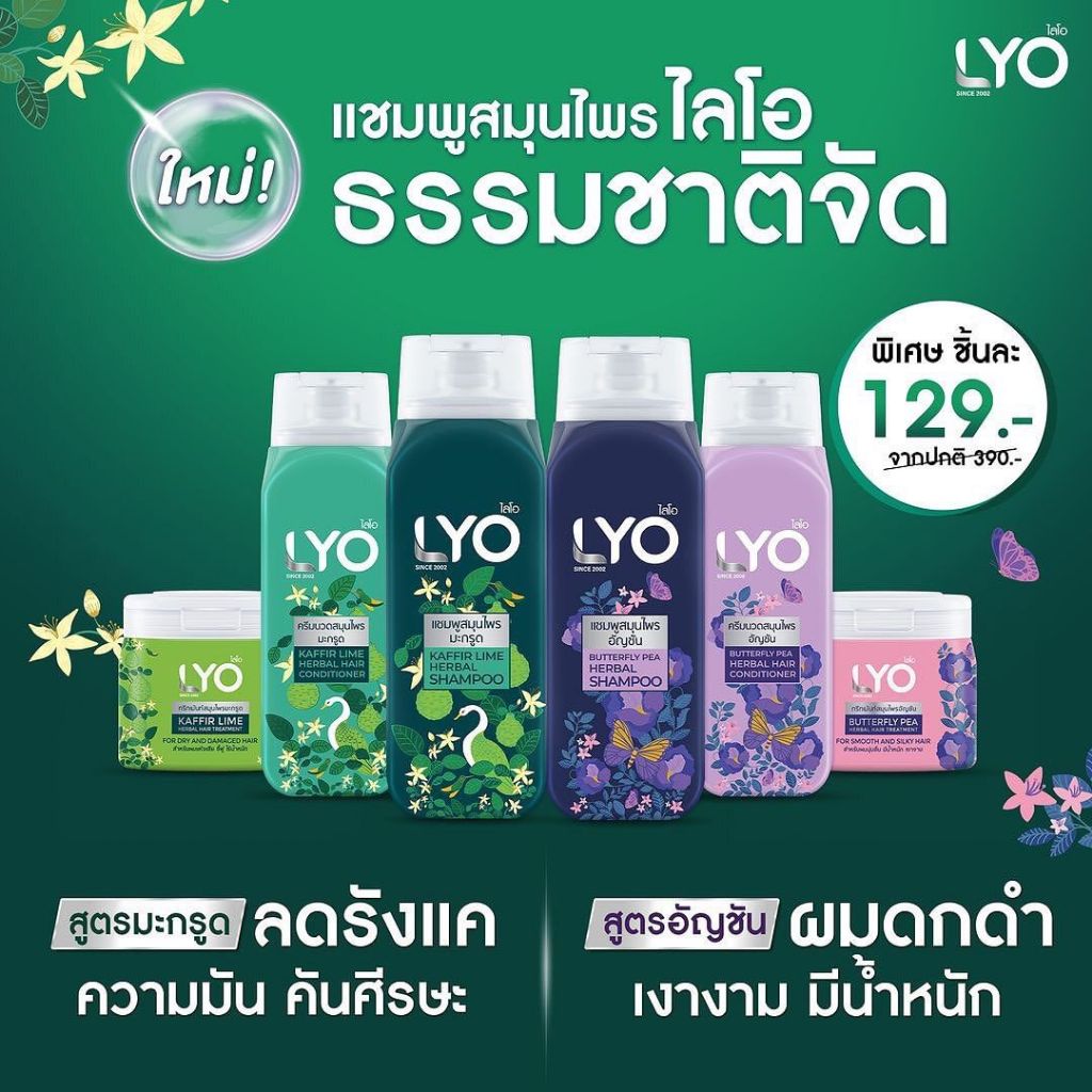 Lyo ไลโอ เคฟเฟอร์ ไลม์,บัตเตอร์ฟลาย พี เฮอเบิล แฮร์ 200 มล. แชมพู / ครีมนวด / ทรีทเมนท์