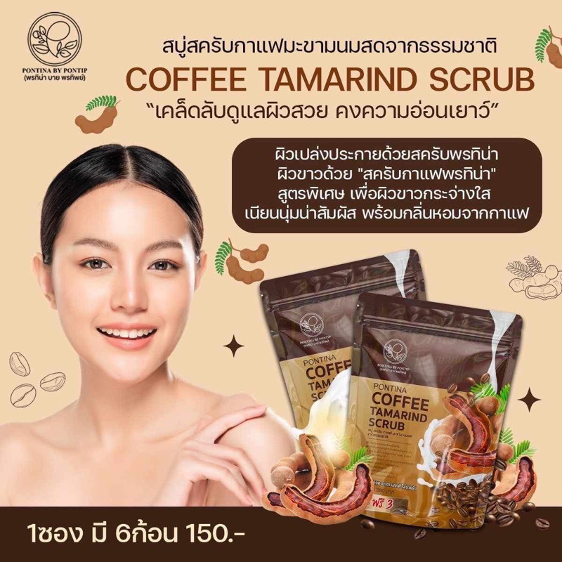 สบู่สครับกาแฟมะขามนมสด จากธรรมชาติ พรทิน่า Pontina Coffee Tamarind Scrub
