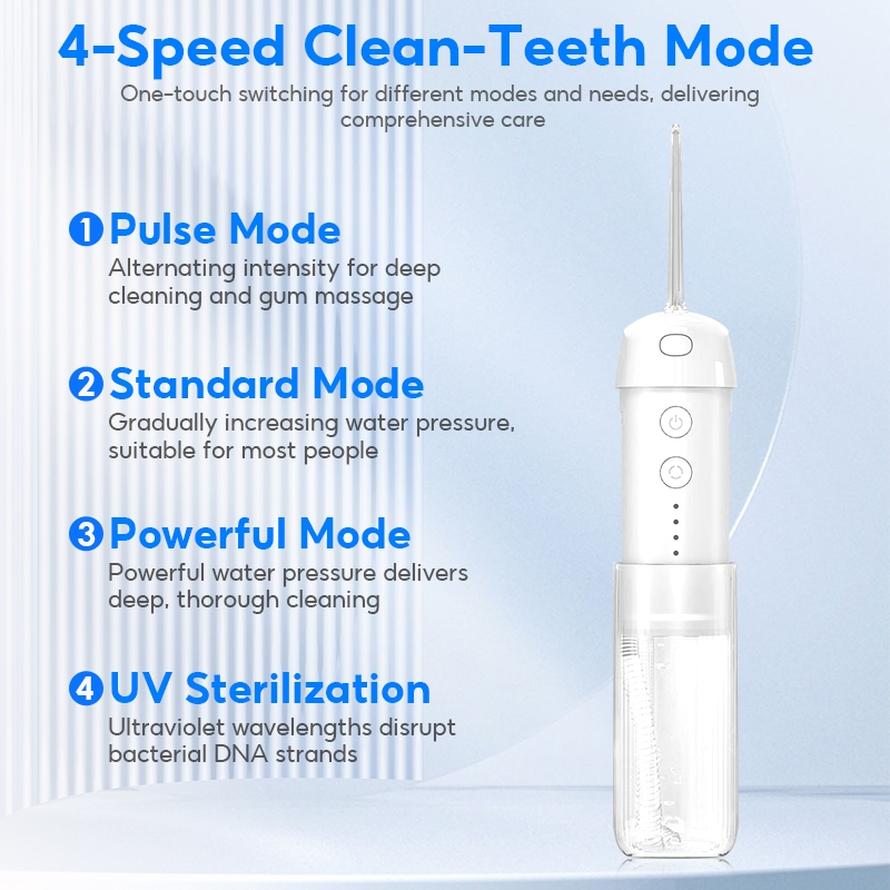 MeeGoo Portable Water Flosser 200ml เครื่องล้างฟันแบบพกพา 4 โหมด 5 หัวฉีด IPX7 กันน้ำ เครื่องทำความสะอาดฟัน