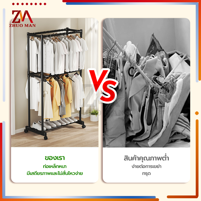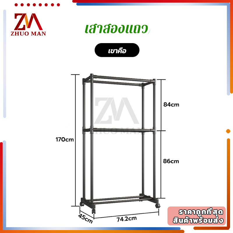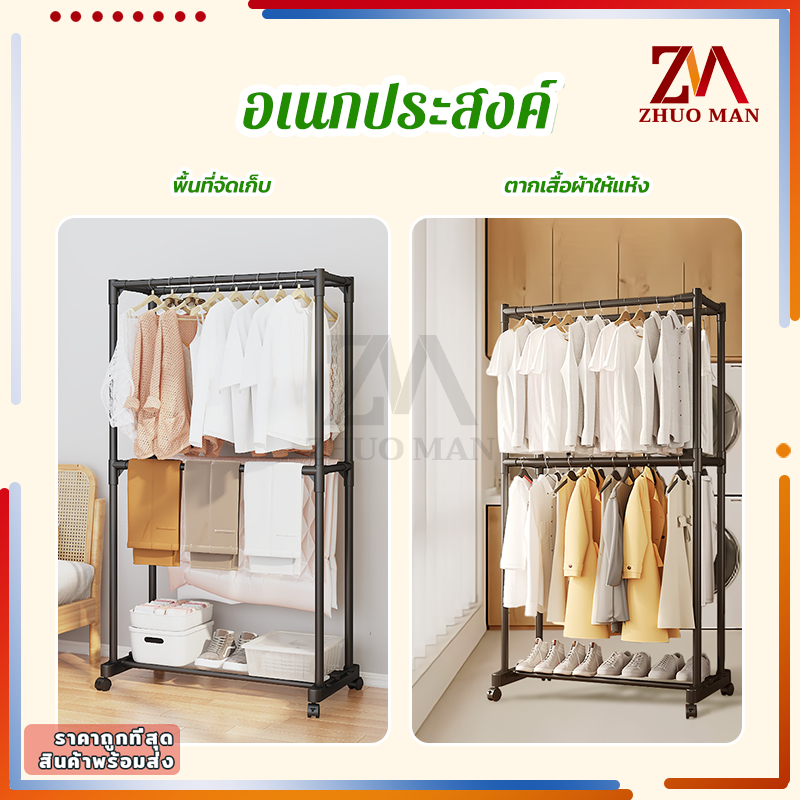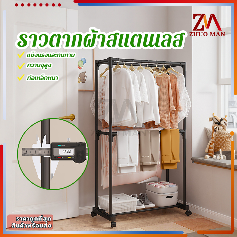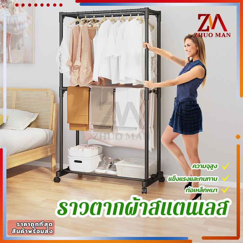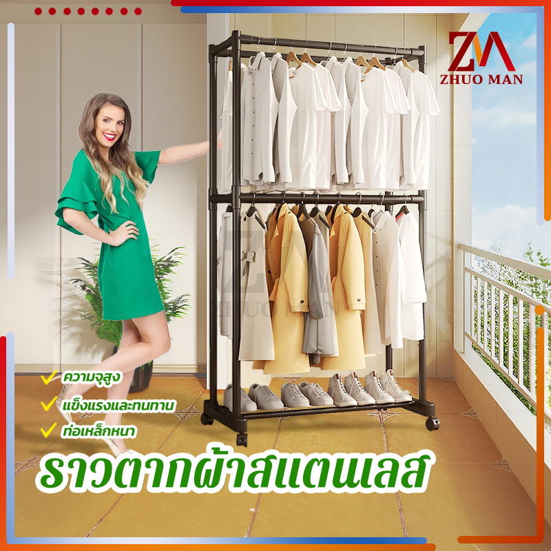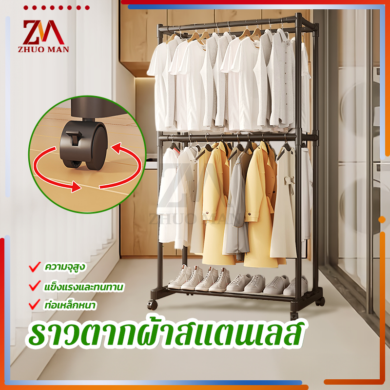 ราวตากผ้าสแตนเลส ราวตากผ้ส ราวแขวนเสื้อผ้า โครงเหล็ก คุณภาพสูง ราวอเนกประสงค์ แบบราวคู่ 2ชั้น มีล้อ เคลื่อนย้ายสะดวก