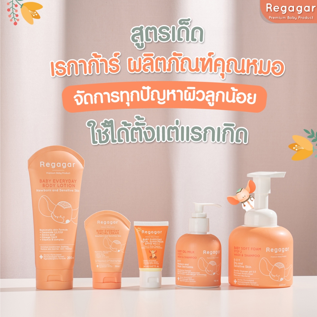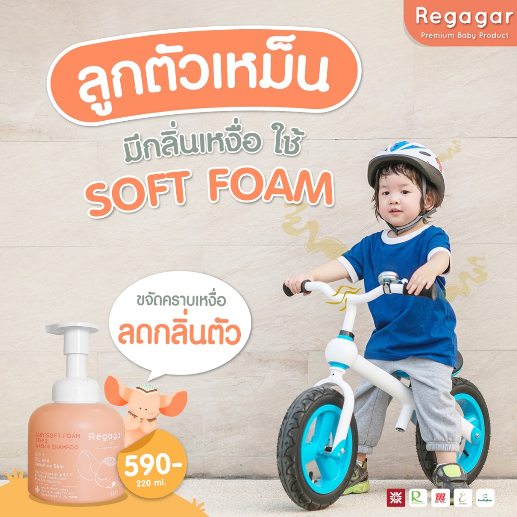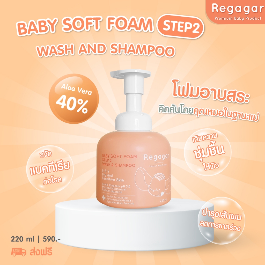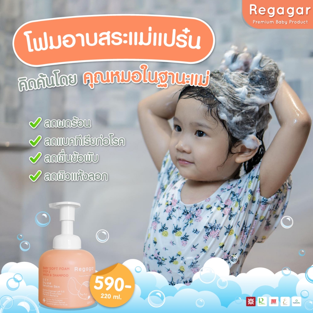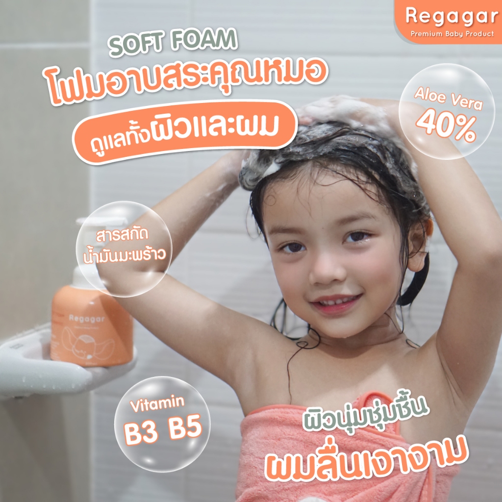 Regagar (เรกาก้าร์) 𝗕𝗔𝗕𝗬 𝗦𝗢𝗙𝗧 𝗙𝗢𝗔𝗠 𝗪𝗔𝗦𝗛 𝗔𝗡𝗗 𝗦𝗛𝗔𝗠𝗣𝗢𝗢 โฟมอาบน้ำเด็ก ผิวแพ้ง่าย ผิวแห้ง ลดแบคทีเรีย ลดอาการผิวหนังอักเสบ