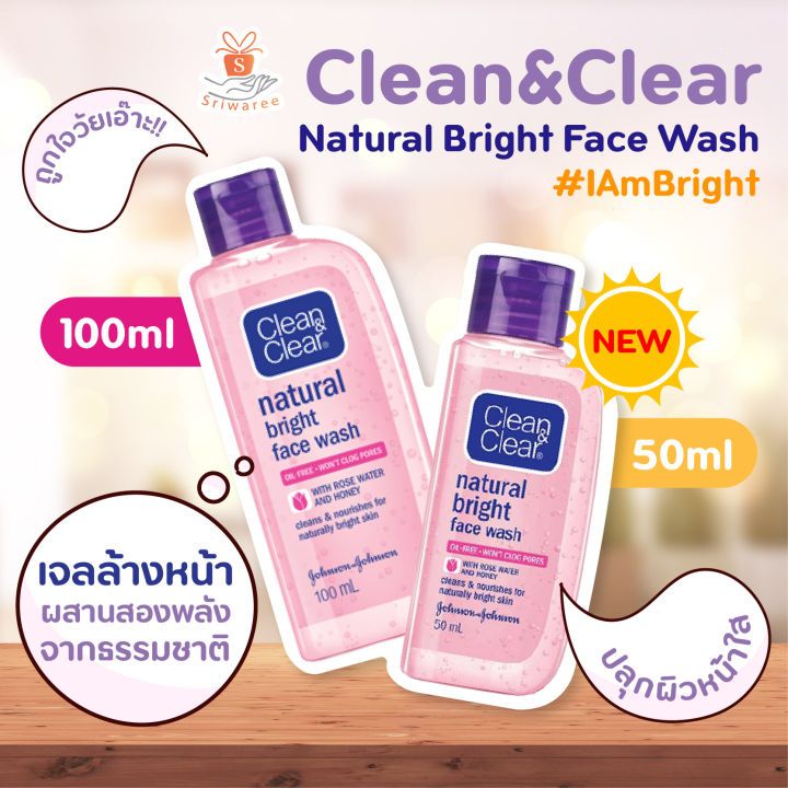 Clean&Clear คลีน แอนด์ เคลียร์ เนเชอรัล ไบรท์ เฟซ วอช 50 มล./ 100 มล.