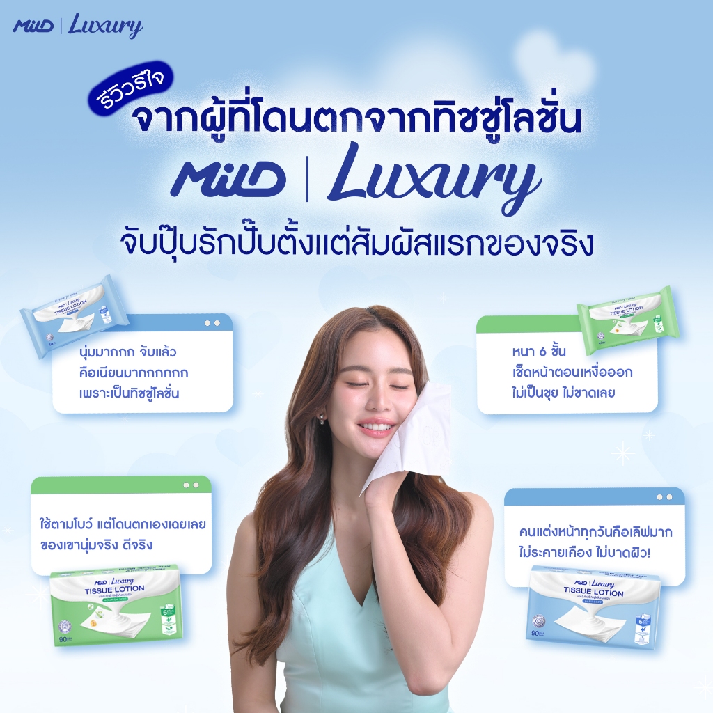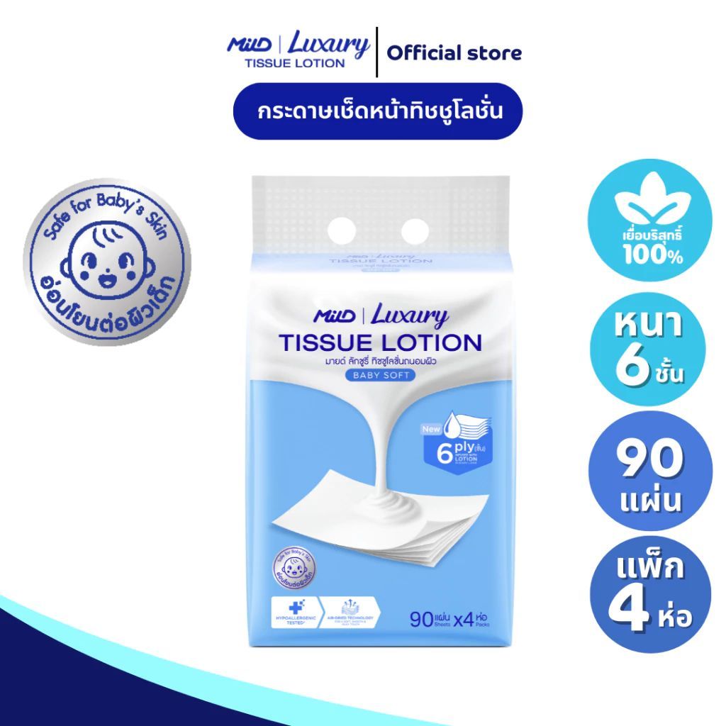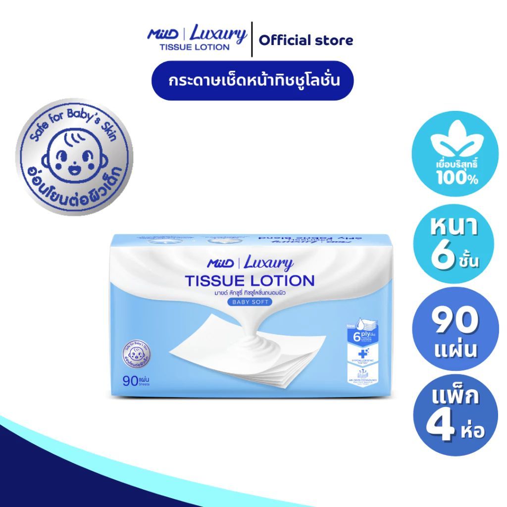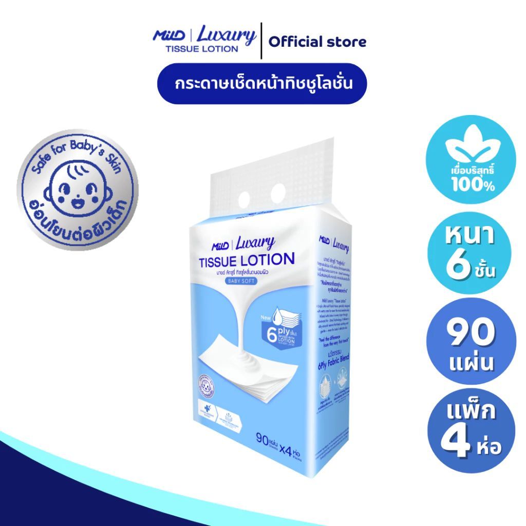 มายด์ ลักชูรี่ เบบี้ซอฟท์ ทิชชูโลชั่น หนา 6 ชั้น 40 แผ่น/90 แผ่น แพ็ค 4 ห่อ Mild Luxury Tissue Lotion 6 ply: Baby Soft