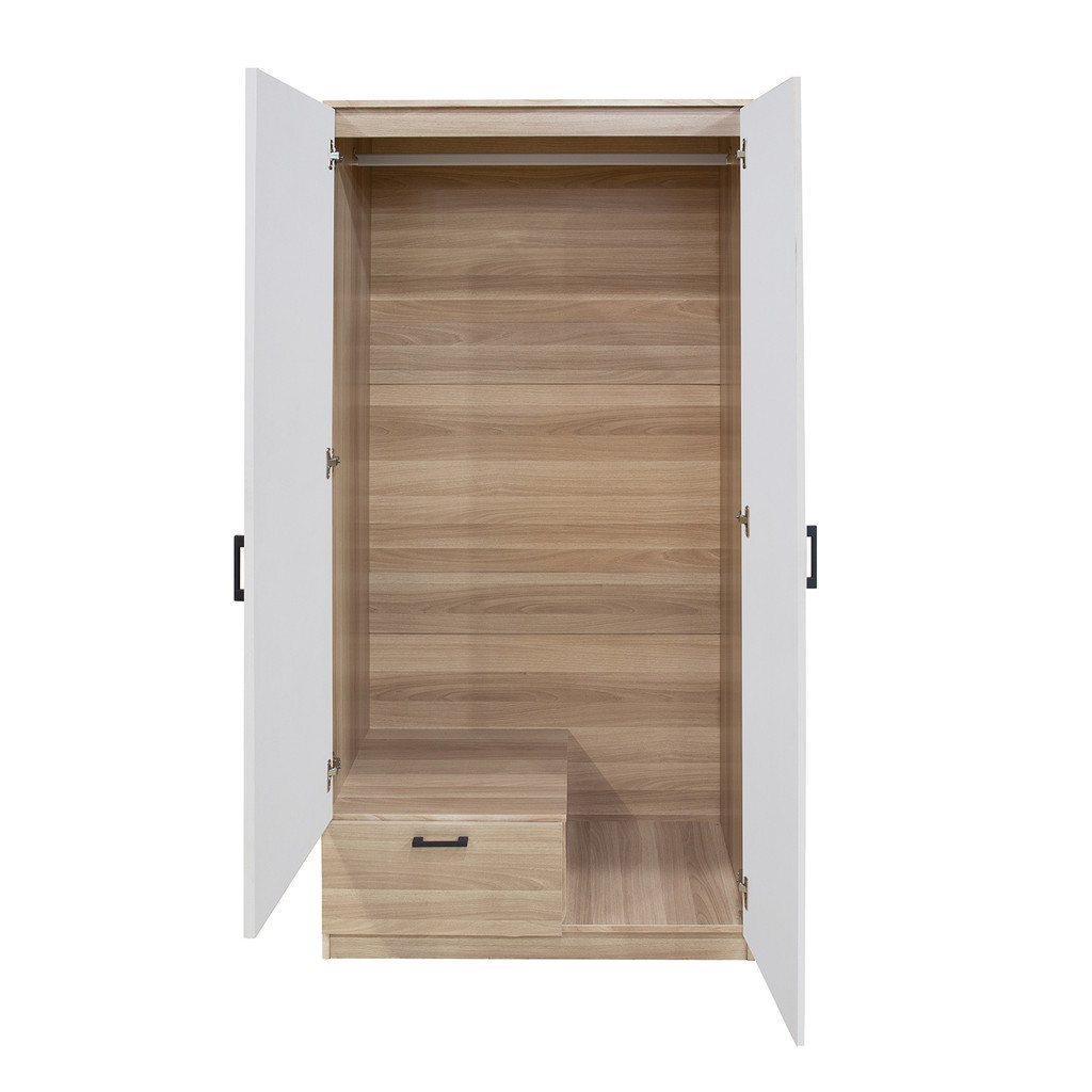 FURDINI ตู้เสื้อผ้า 2 บานเปิด GREATE 90 ซม. สีไวท์โอ๊ค/ขาว จัดส่งโดย HomePro
