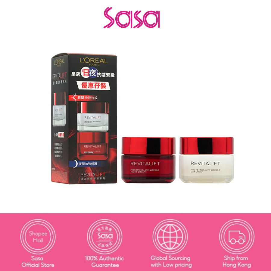 L'Oreal Revitalift Day And Night ชุดครีมทาผิวหน้า ช่วยลดเลือนริ้วรอย (2 ชิ้น)