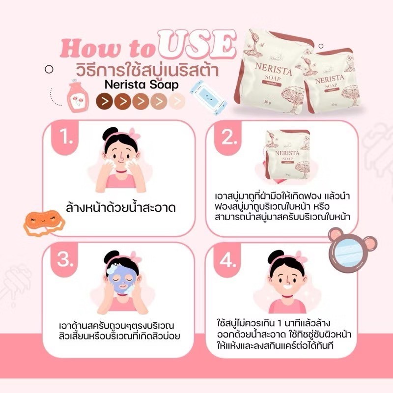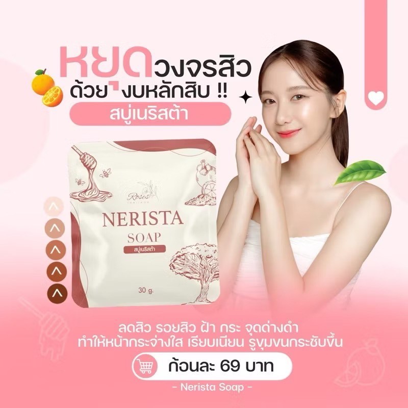 Nerista Soap สบู่เนริสต้า ล้างหน้า ลดสิว ผิวกระจ่างใส กระชับรูขุมขน ขนาด 30 g.