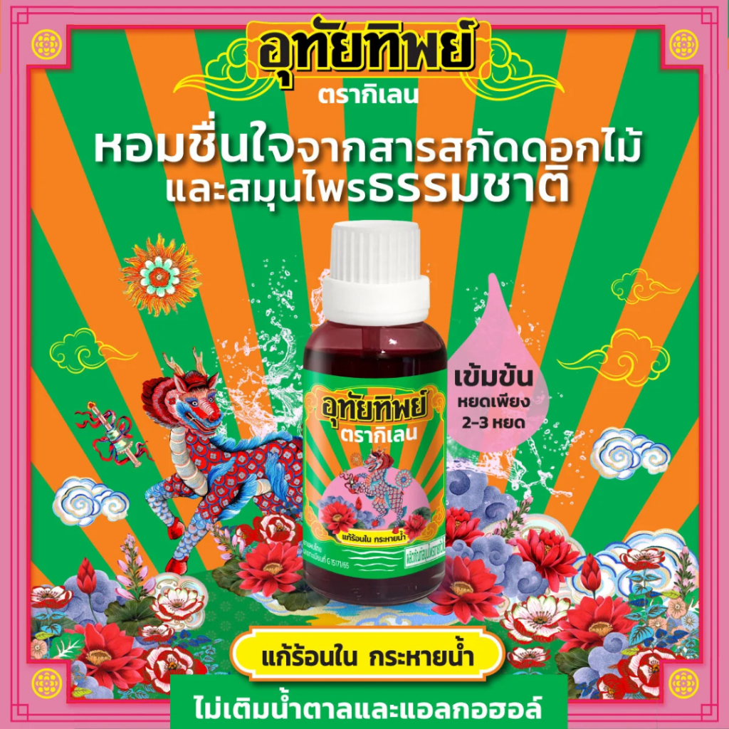 อุทัยทิพย์ ตรากิเลน โฉมใหม่ ขนาดพกพา 15 มล.(1 แพ็ก มี 4 ขวด)