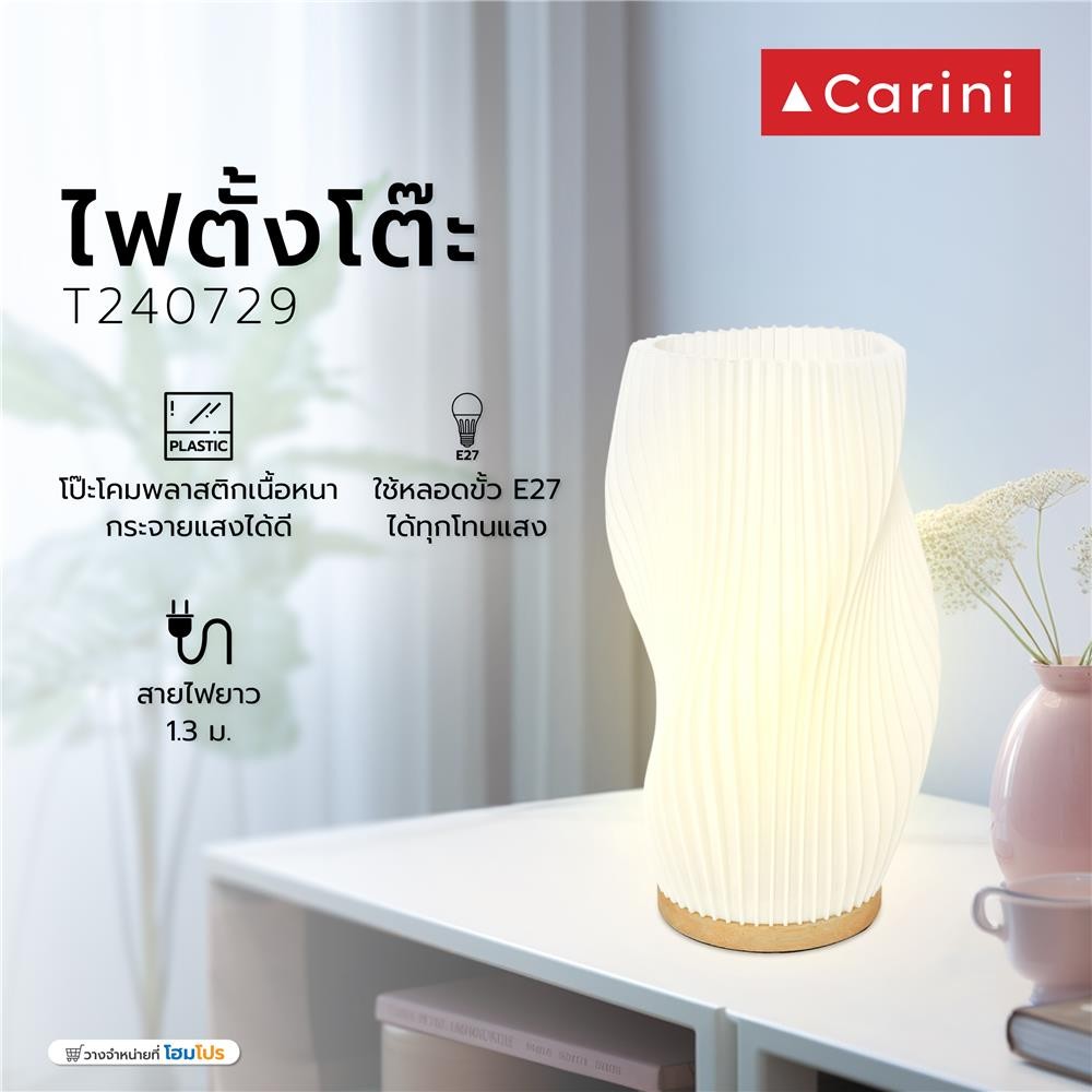 CARINI ไฟตั้งโต๊ะ T240729 สีขาว/ลายไม้ จัดส่งโดย HomePro