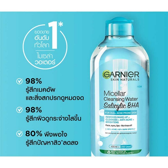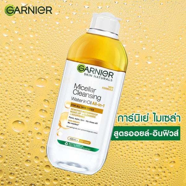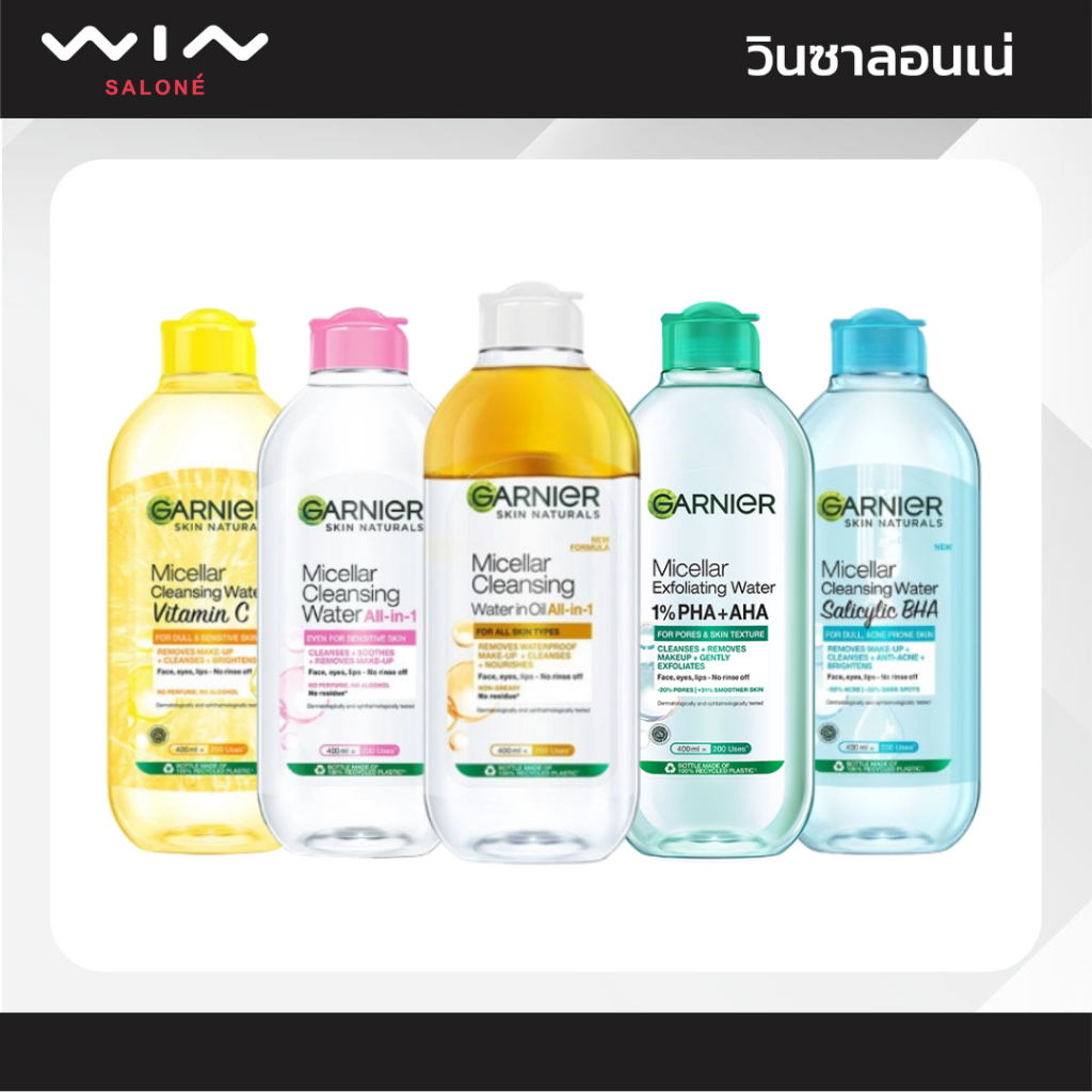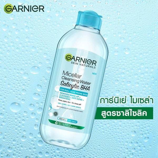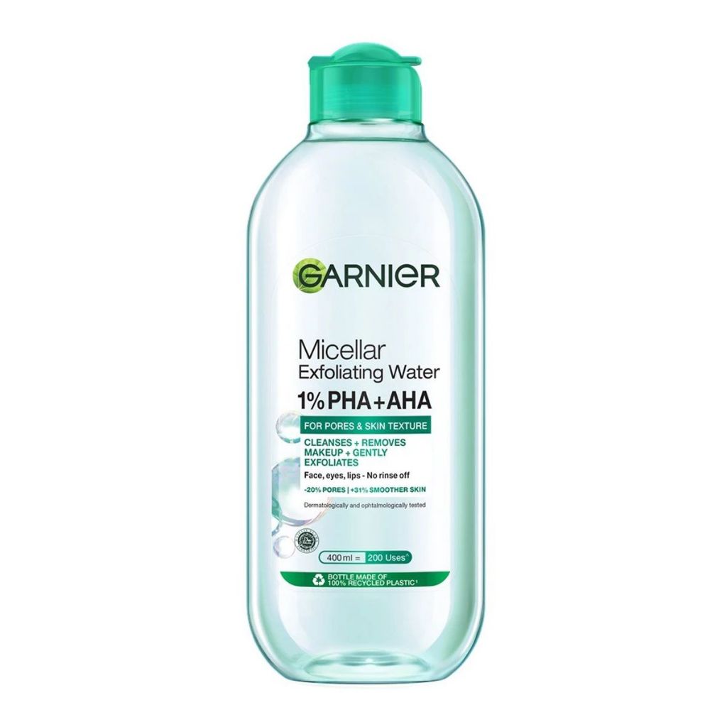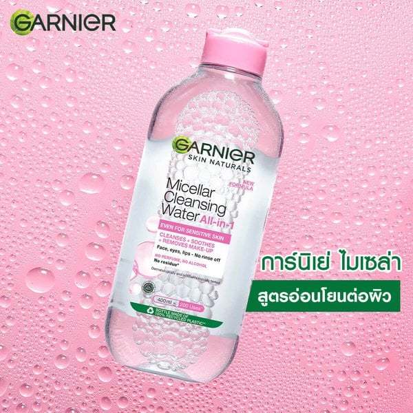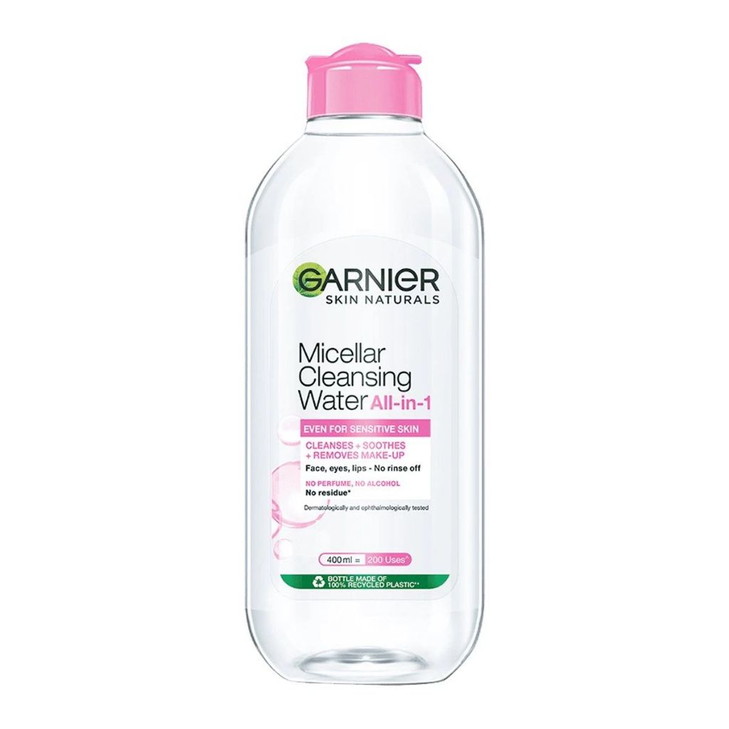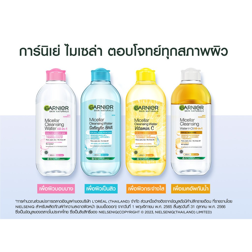 GARNIER การ์นิเย่ ไมเซล่า คลีนซิ่ง วอเตอร์ ขวดใหญ่ 400 มล. เช็ดทำความสะอาดเครื่องสำอาง แบบน้ำ ไม่แห้งตึง