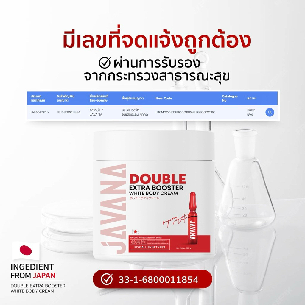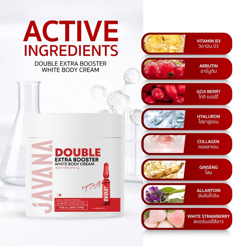 [ ส่งด่วน ] บูสเตอร์จาวาน่า JAVANA Double Extar Booster White Body Cream 200g. ครีมบำรุงผิวกาย