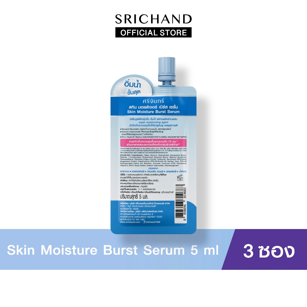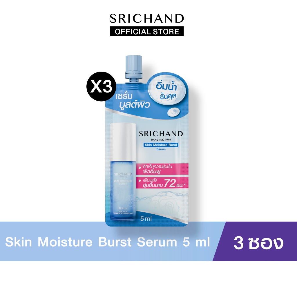 [3pcs] SRICHAND ศรีจันทร์ สกิน มอยส์เจอร์ เบิร์ส เซรั่ม 5 มล.(แบบซอง) Skin Moisture Burst Serum 5 ml.
