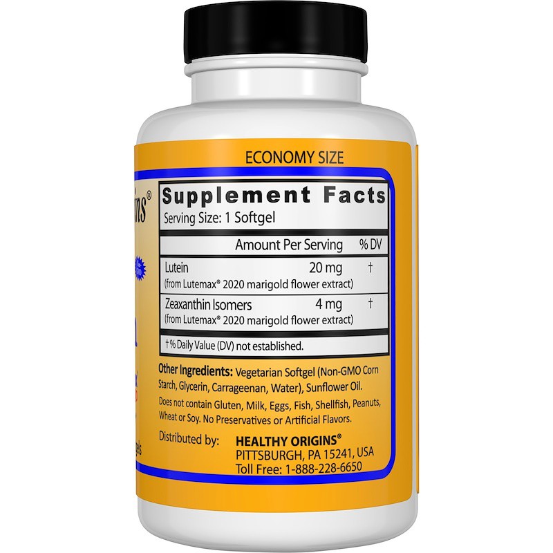 Healthy Origins, Lutein, Natural, 20 mg, 180 Veggie Softgels