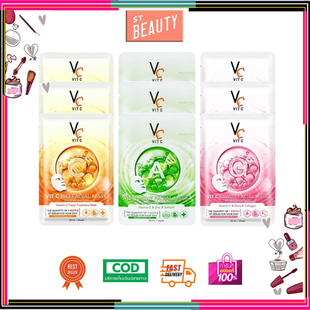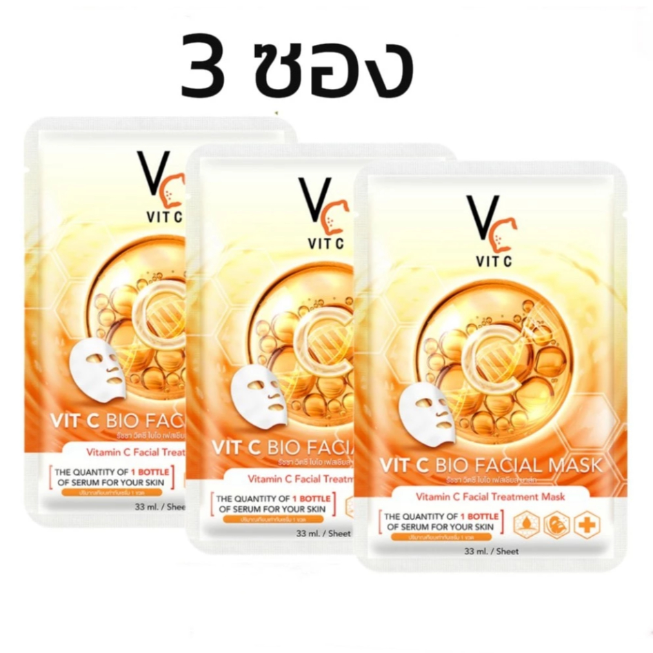 (3ซอง) Ratcha VC Vit c bio facial mask รัชชา วิตซี แผ่นมาส์กหน้า 30 ml. มี3สูตร