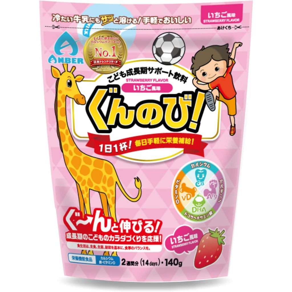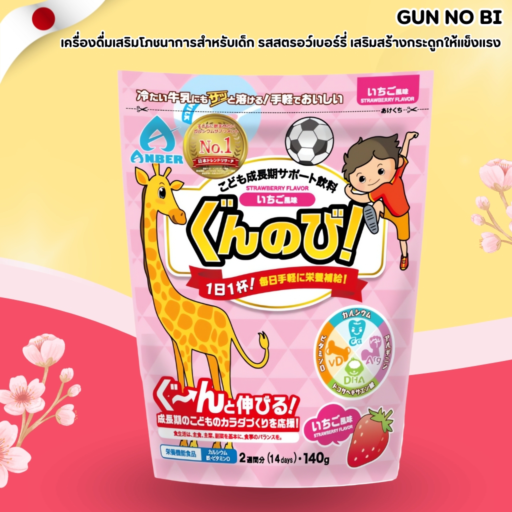 EXP07/26 Gun no Bi Strawberry Drink 🍓 เครื่องดื่มเสริมโภชนาการสำหรับเด็ก รสสตรอว์เบอร์รี่ (140g) No.Jp357