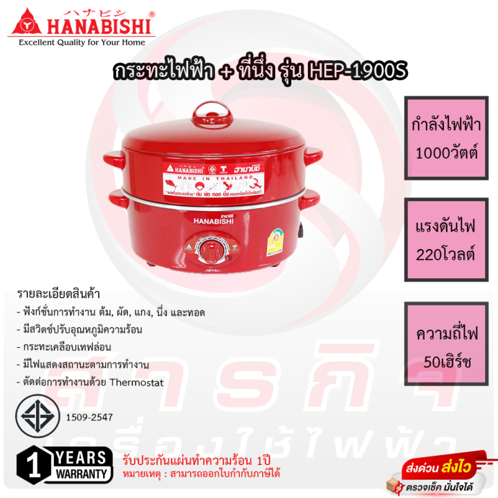 กระทะไฟฟ้า Hanabishi รุ่น HEP-1900S ขนาด 12นิ้ว