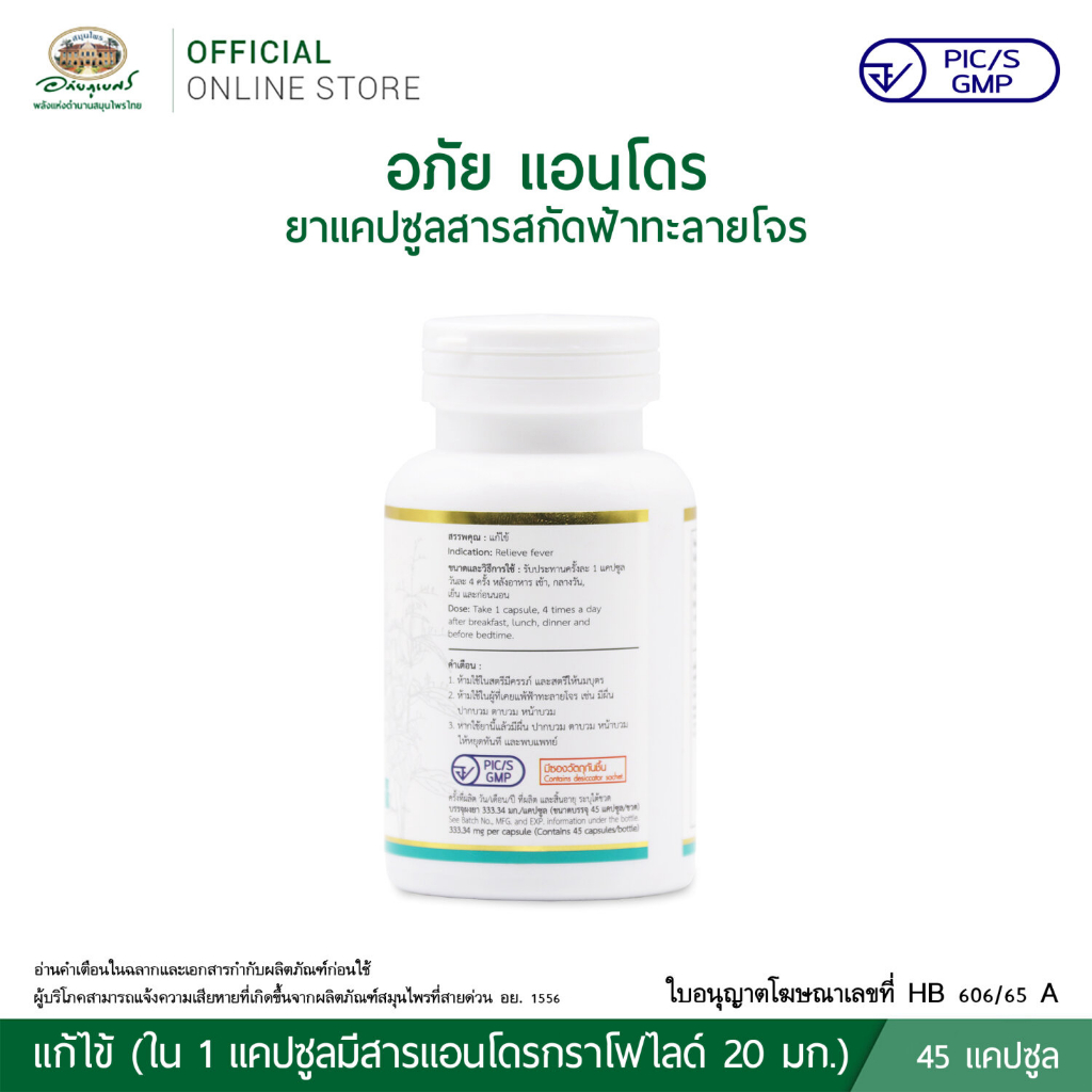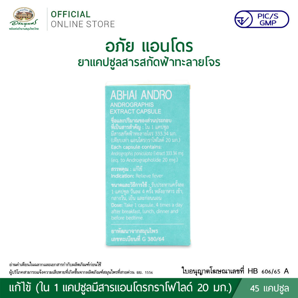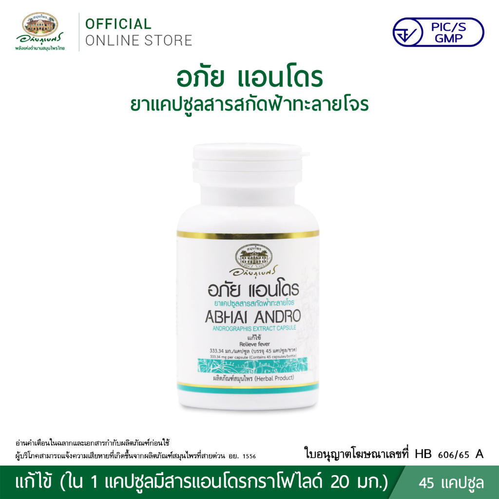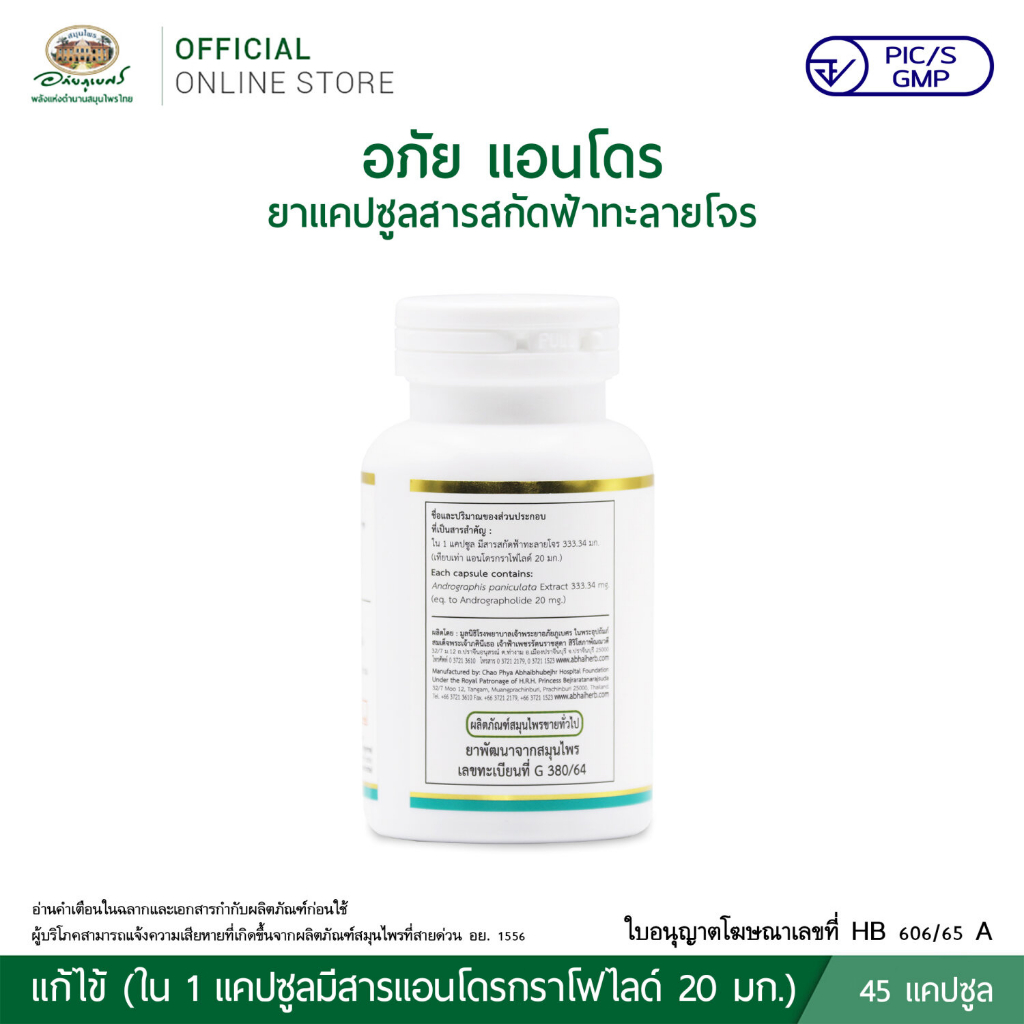 อภัยภูเบศร อภัย แอนโดร ยาแคปซูลสารสกัดฟ้าทะลายโจร 45 แคปซูล アバイブーベ 2025