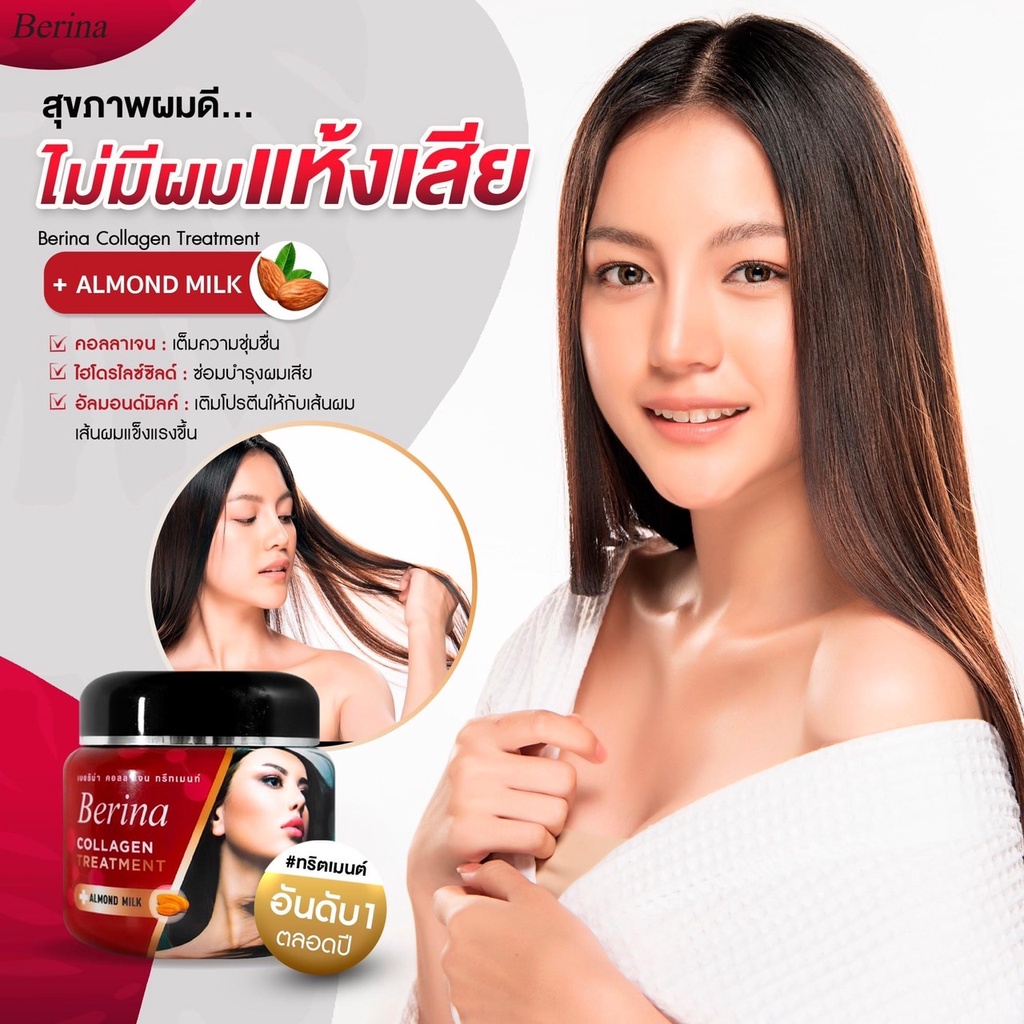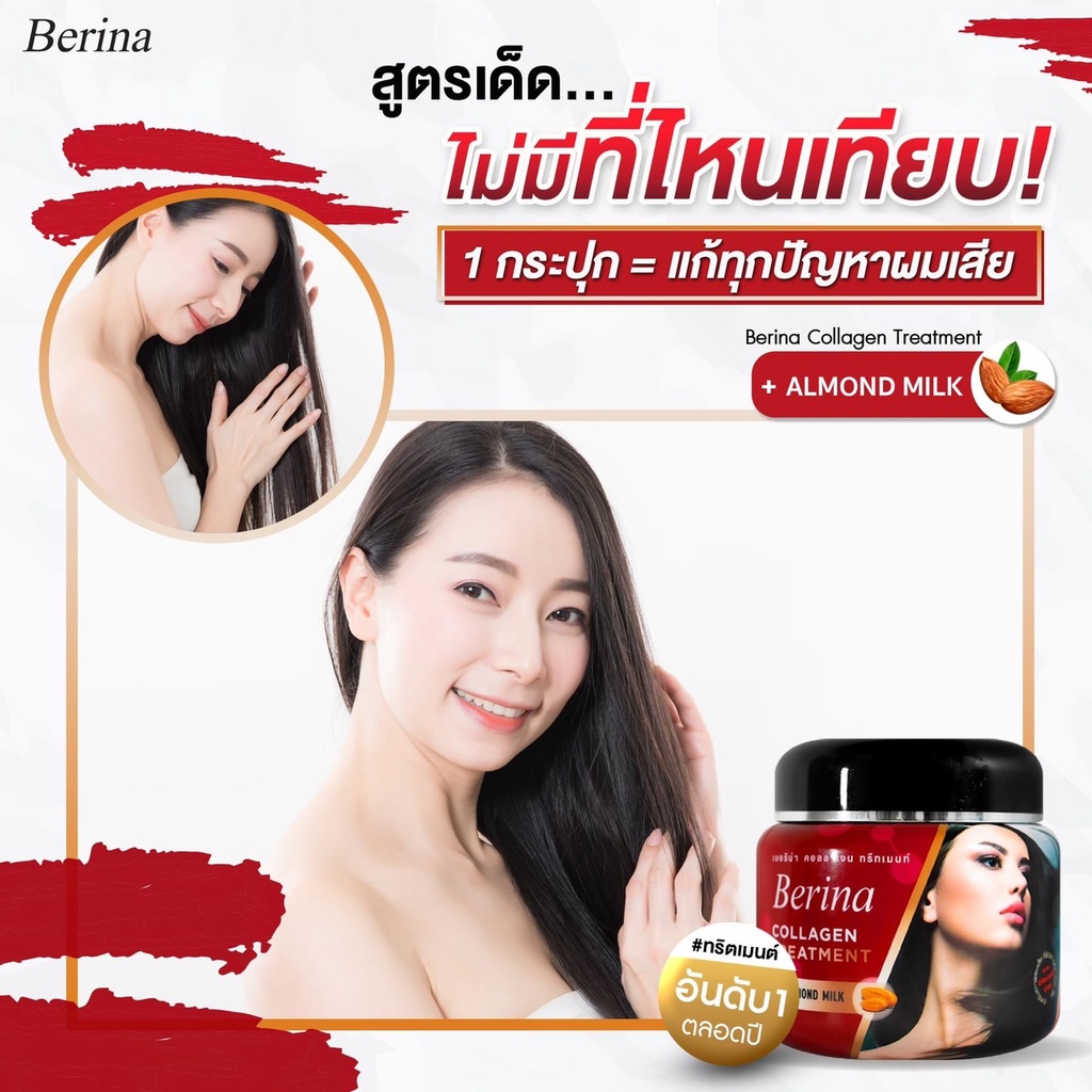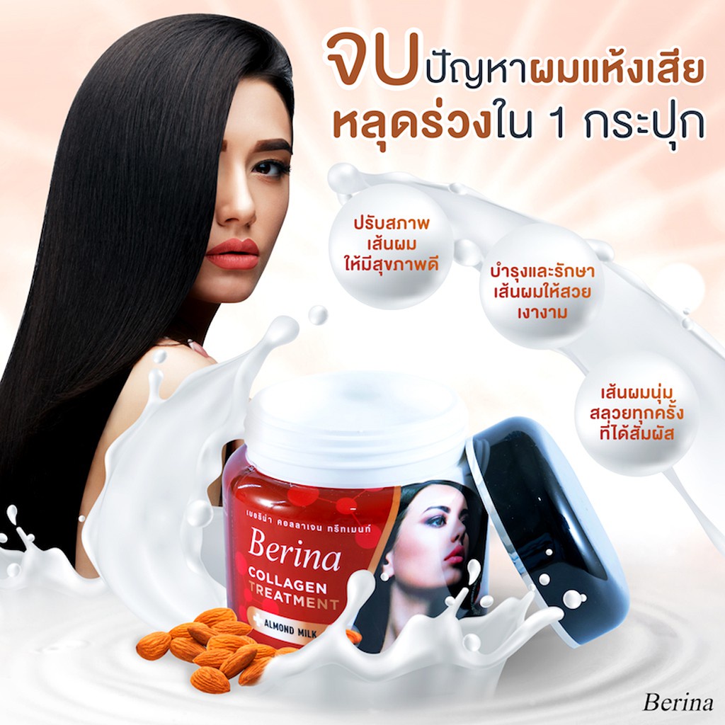 เบอริน่า คอลลาเจน ทรีทเมนท์ อัลมอนด์ มิลค์ แบบกระปุก 500 กรัม. Berina Collagen Treatment Almond Milk 500 g.