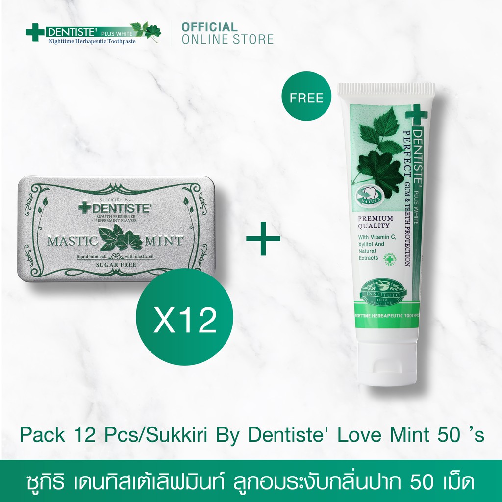 Dentiste - Sukkiri By Dentiste Love Mint 50 Tab/Pc - แพค12 ชิ้น/ ซูกิริ เดนทิสเต้เลิฟมินท์ ลูกอมระงับกลิ่นปาก50 เม็ด