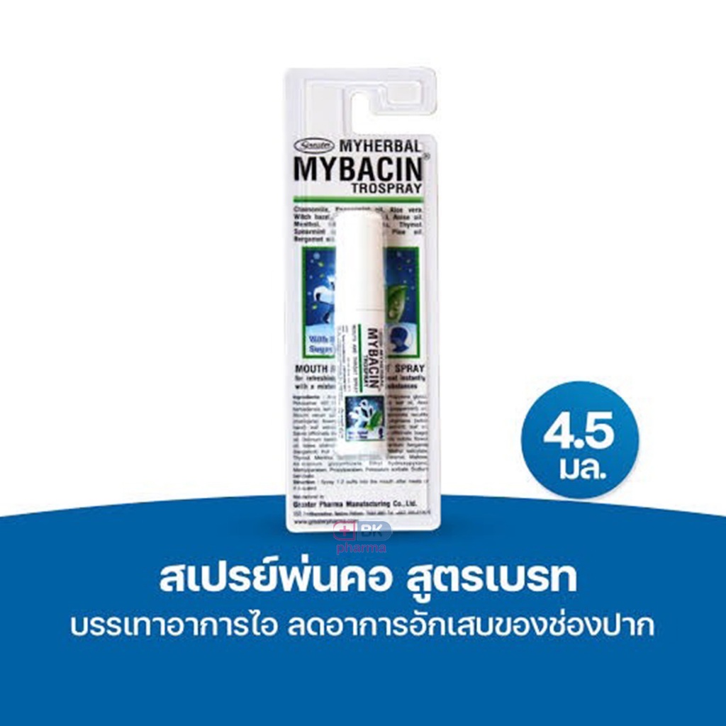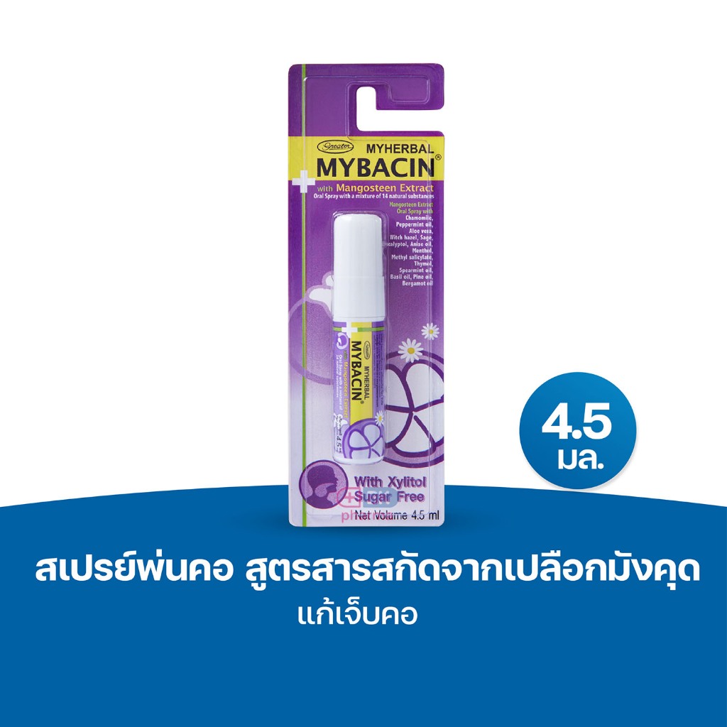 สเปรย์พ่นคอ Mybacin Spray (15 ml) มายเฮอบัล มายบาซิน Myherbal ฟ้าทะลายโจร / มังคุด / Trospray มิ้น / Apple แอปเปิ้ล 1 ก.