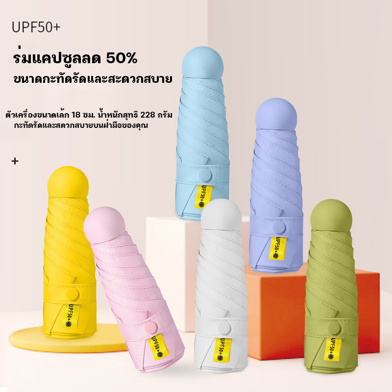 YTL ร่มแคปซูล ร่มพับ ร่มสีมินิมอล กัน UV ไซส์พกพา กันยูวี 100% ขนาดเล็ก ด้ามจับมีความแข็งแรงทนทาน