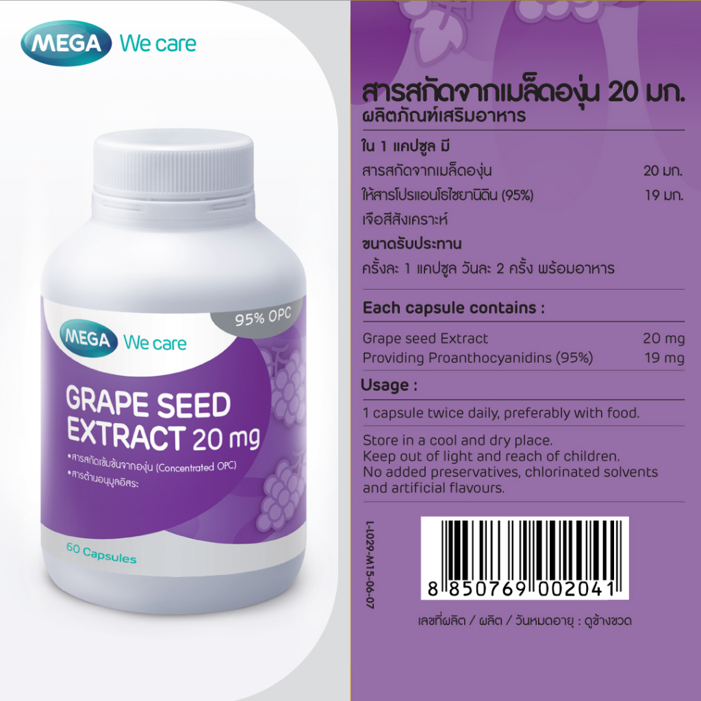 Mega we care Grape Seed Extract 60 Capsules เมก้า วี แคร์ สารสกัดเมล็ดองุ่น 20 มก.[1946]