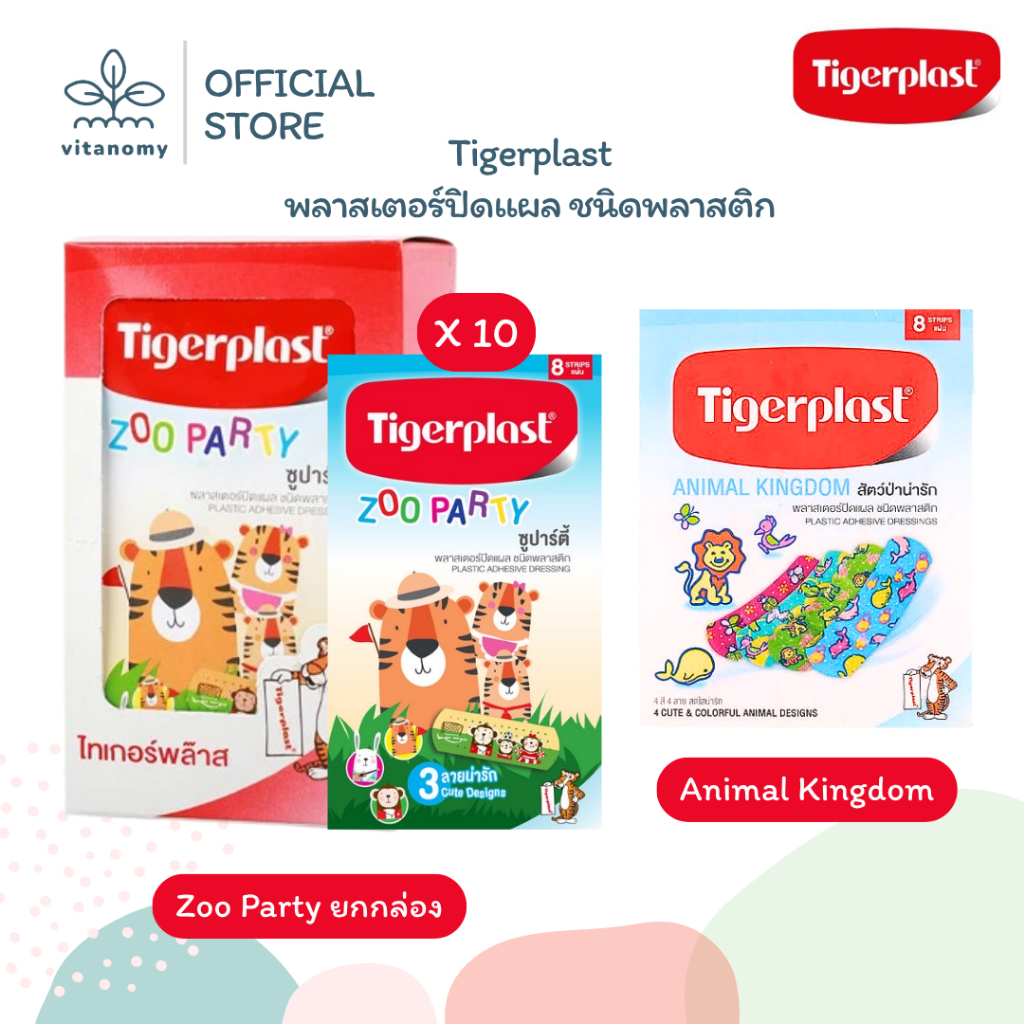 Tigerplast พลาสเตอร์ปิดแผล ชนิดพลาสติก ลายการ์ตูนสัตว์น่ารัก Zoo Party,Animal Kingdom