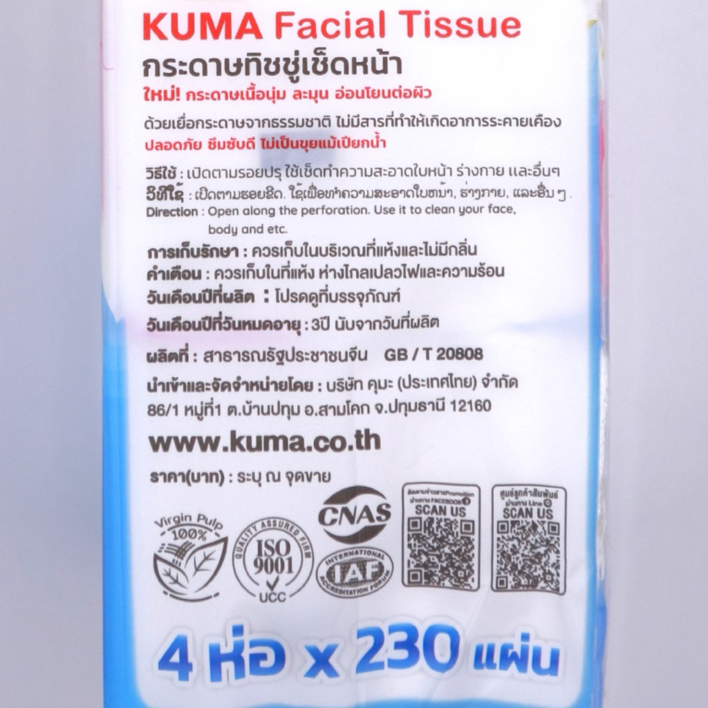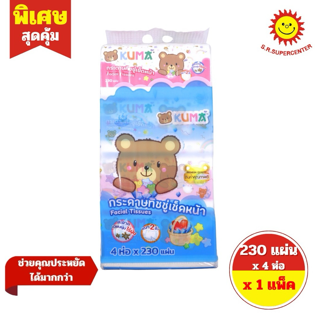 [ 1 แพ็ค ] Kuma คุมะ กระดาษทิชชู่เช็ดหน้า ขนาด 230 แผ่น x 4ห่อ)