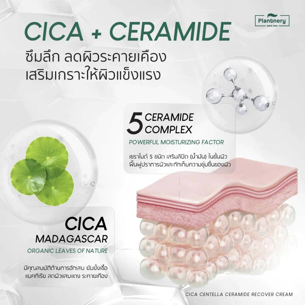 ส่งไว Plantnery Cica Centella Ceramide Recover Cream 50 g.