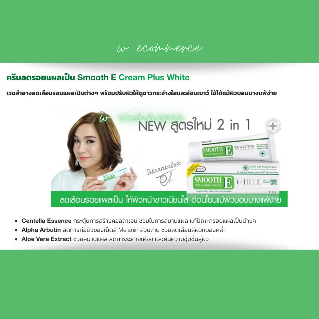 Smooth E Cream Plus White 10 , 30, 60 g. สมูท อี ครีม พลัส ไวครีมลดริ้วรอย แผลเป็น เพื่อผิวขาวเนียนใส อย่างเป็นธรรมชาติ