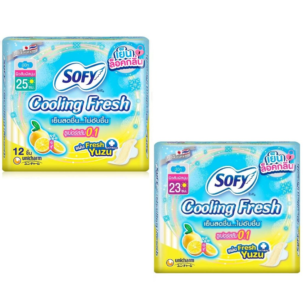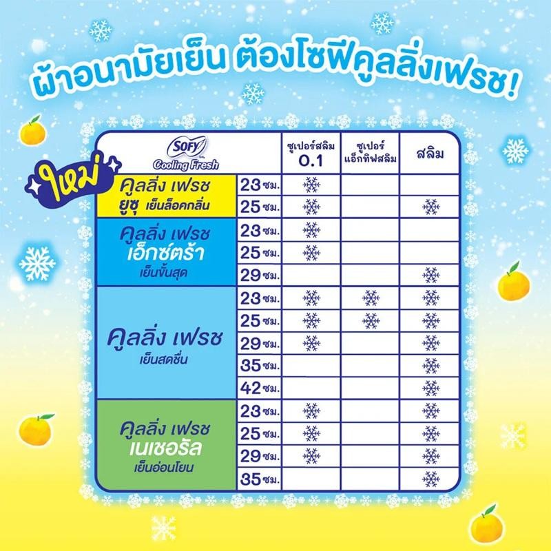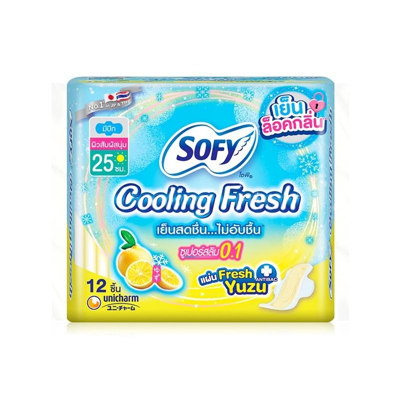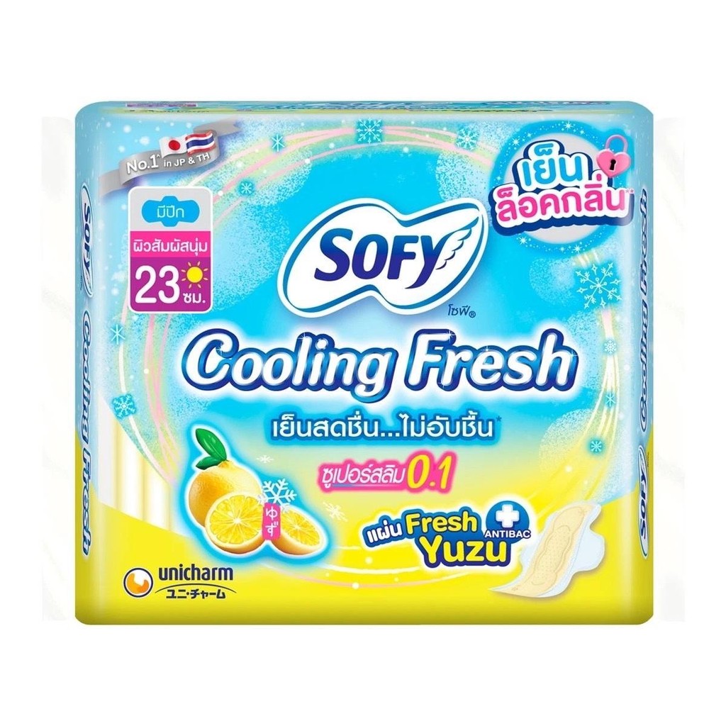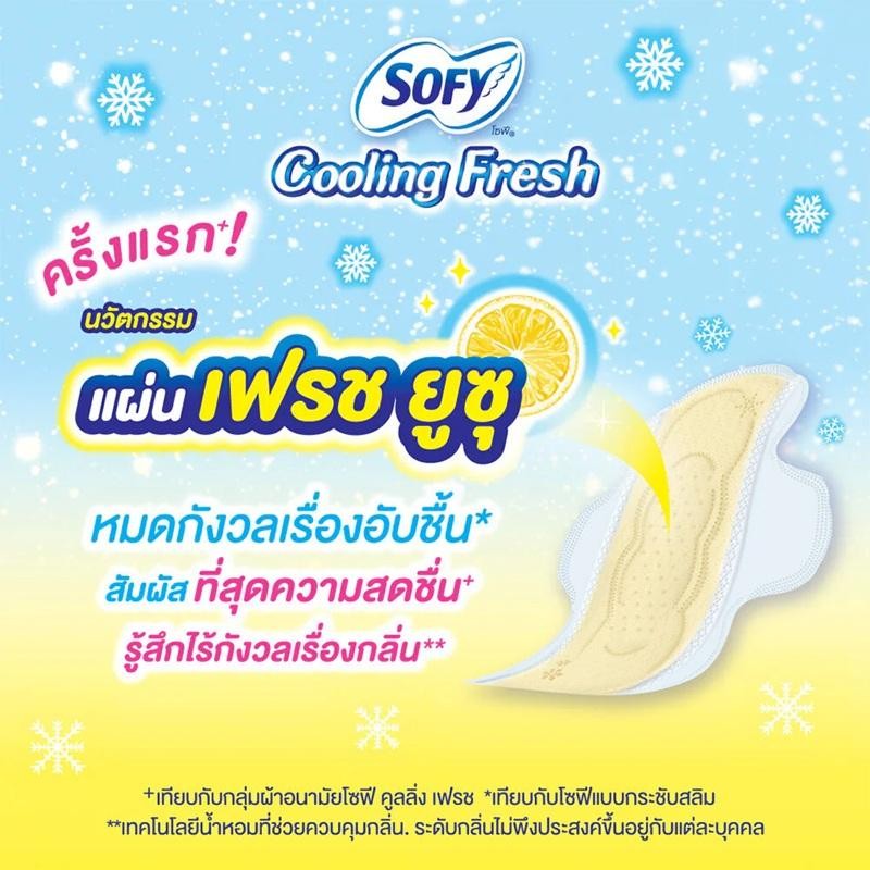 Sofy โซฟี ผ้าอนามัย เย็น มีปีก คูลลิ่ง เฟรช ซูเปอร์สลิม แผ่นเฟรซ ยูซุ 1 ห่อ