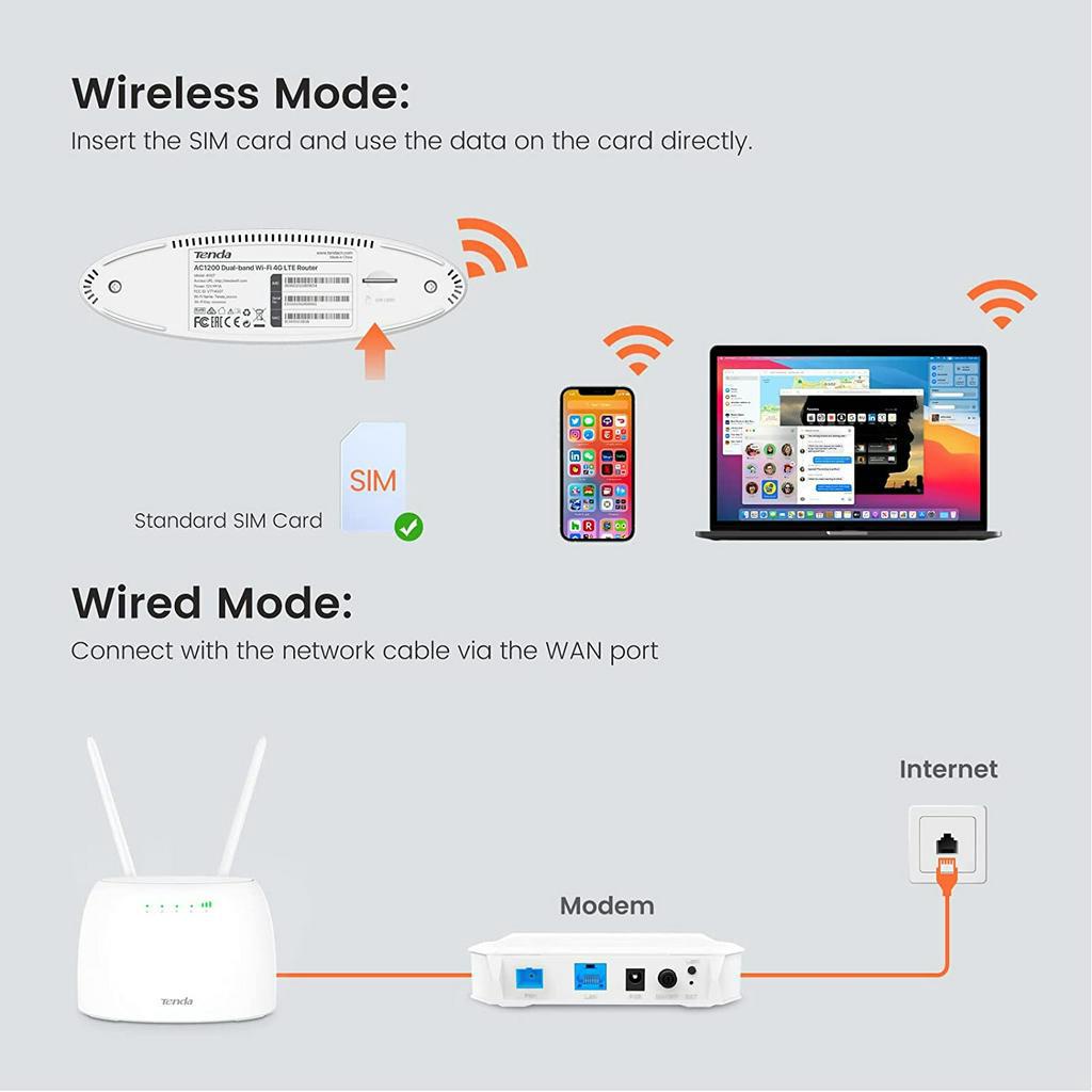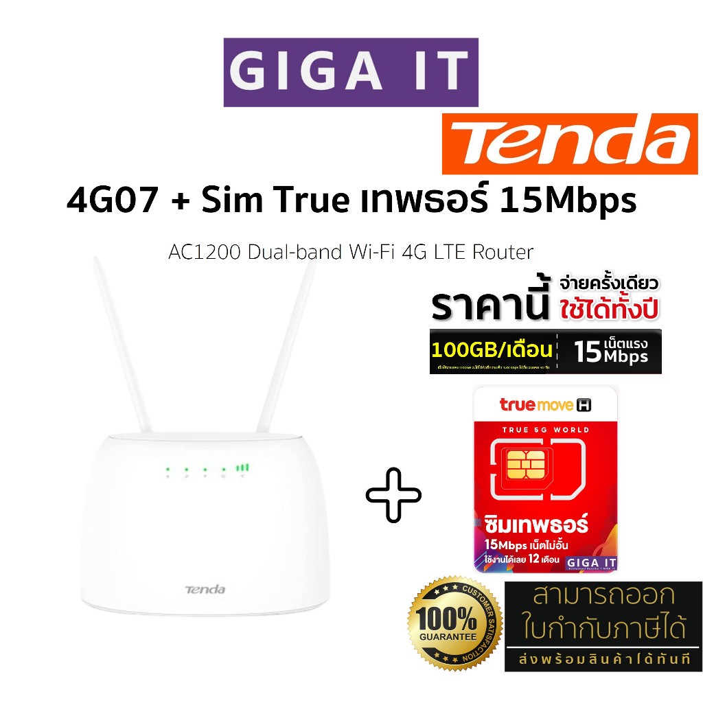 Tenda 4G07 AC1200 Wi-Fi 4G เร้าเตอร์ใส่ซิมปล่อย WI-FI รองรับซิมทุกเครือข่าย ประกันศูนย์ 5 ปี