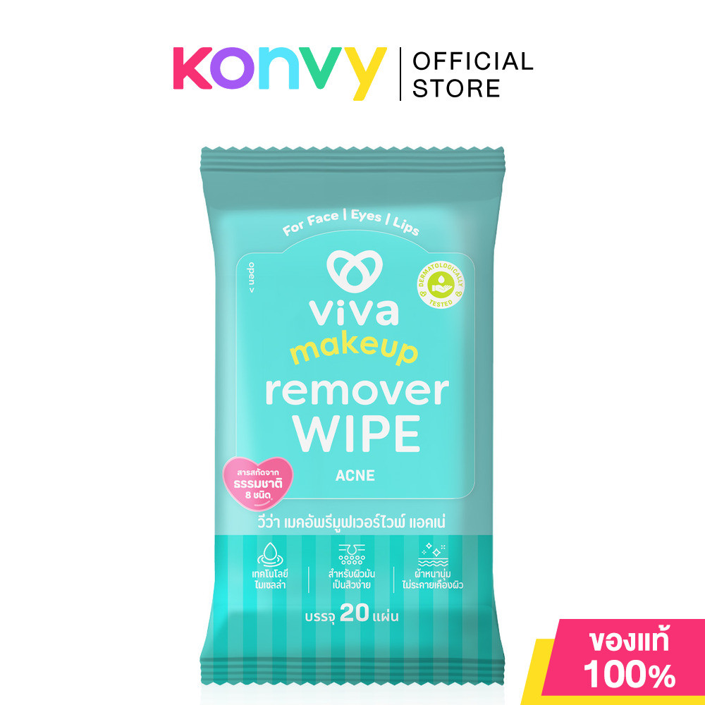 Viva Makeup Remover Wipe วีว่า ทิชชู่เปียกเช็ดเครื่องสำอาง 20 Sheets (Smooth/Acne)