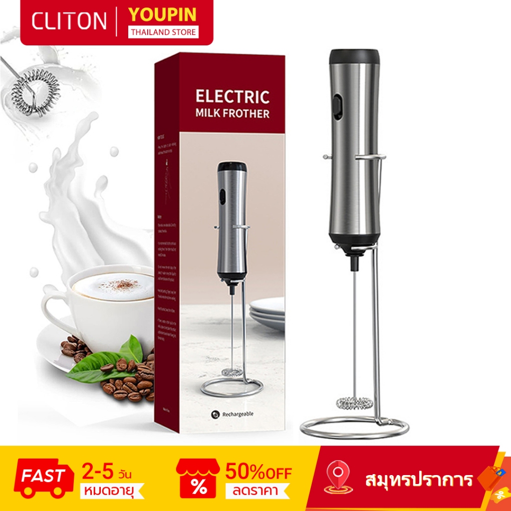 Cliton เครื่องตีฟองนมไฟฟ้า ขนาดเล็ก พร้อมขาตั้ง เกรดอาหาร สําหรับทํากาแฟ แฟรปเป้ ลาเต้ มัทฉะ ช็อกโกแลตร้อน