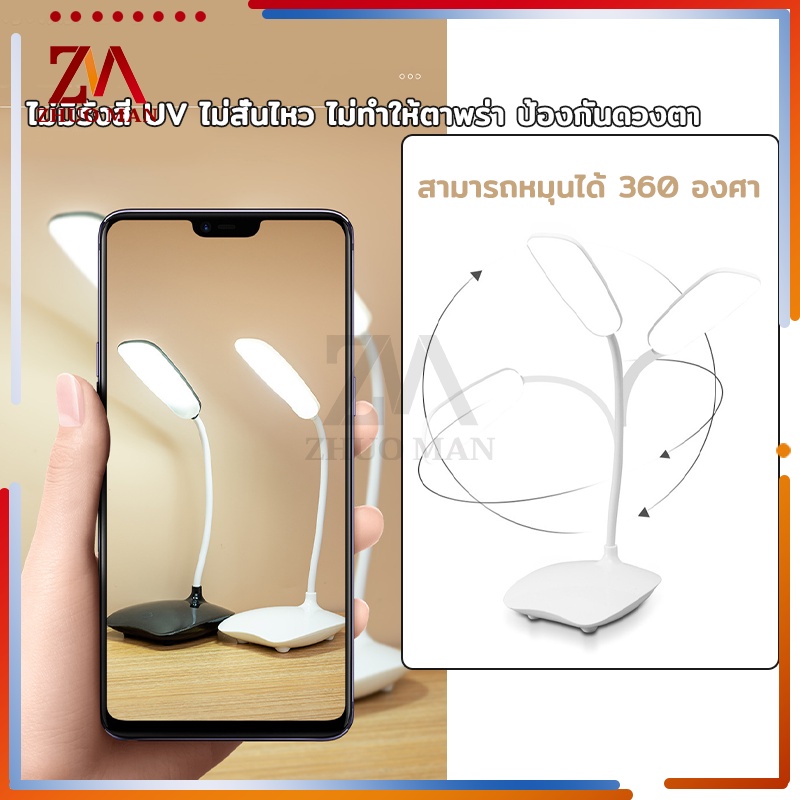ไฟอ่านหนังสือ led โคมไฟหัวเตียง โคมไฟตั้งโต๊ะมินิมอล ปรับแสงได้3ระดับ 2สี พับเก็บได้ ไม่มีรังสี UV ป้องกันดวงตา