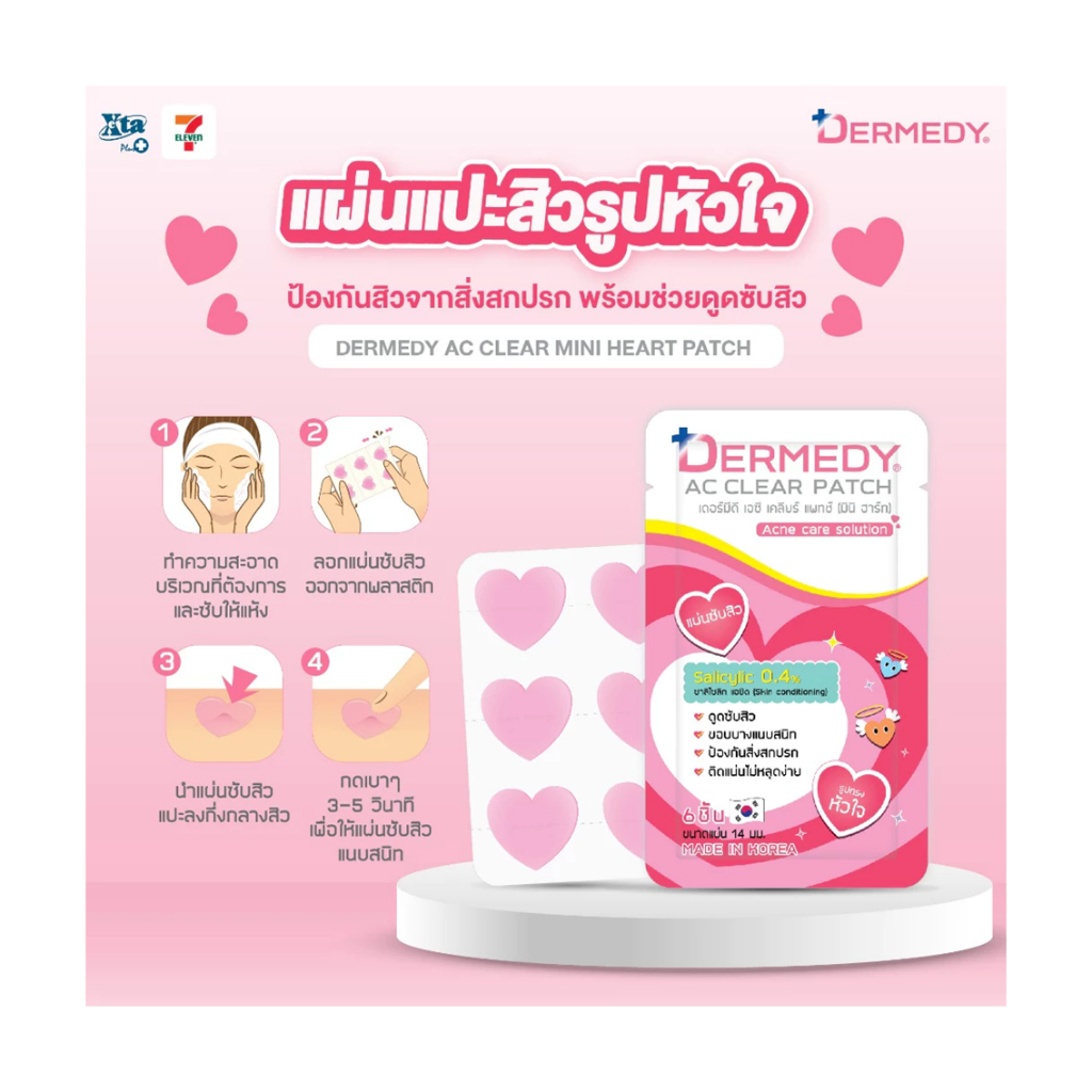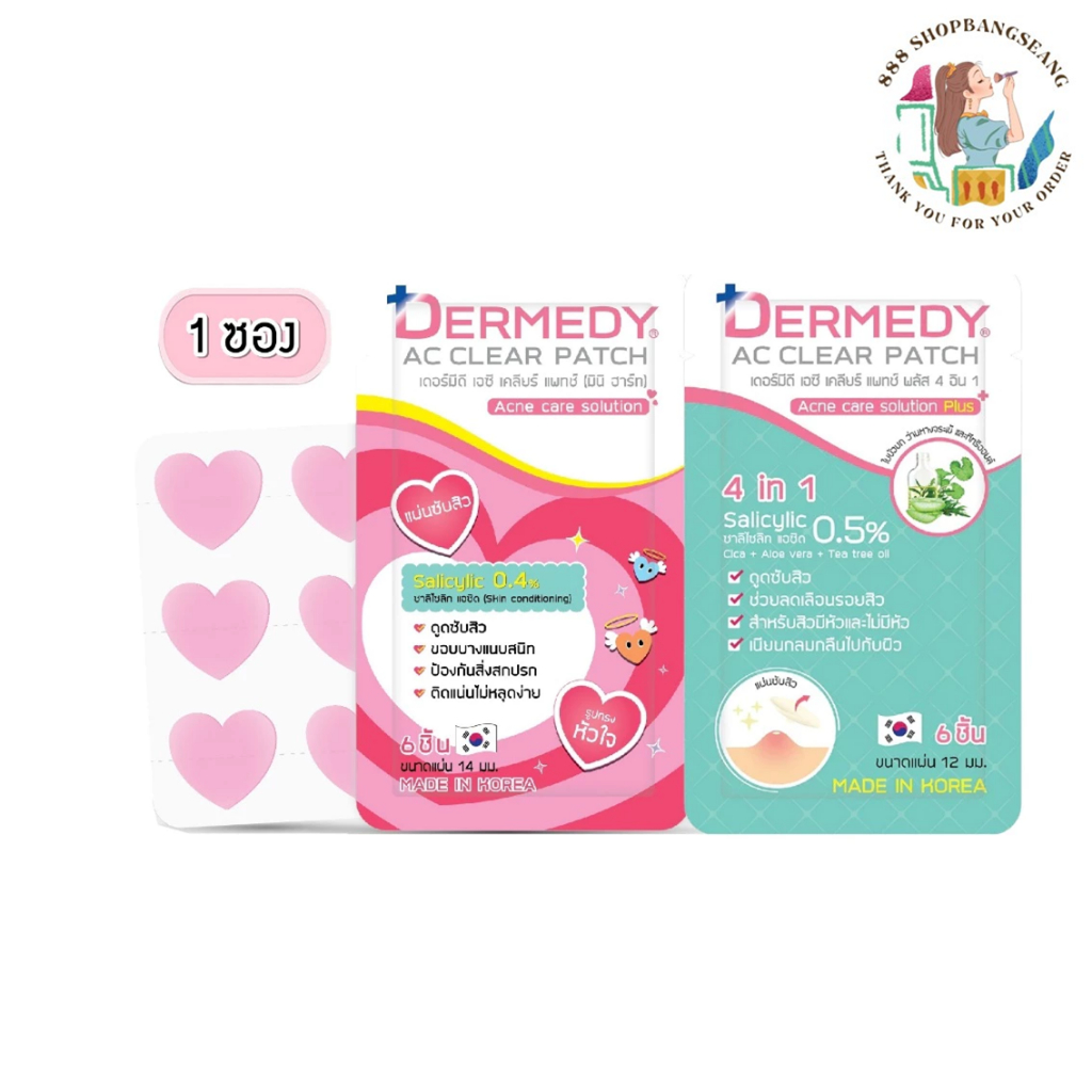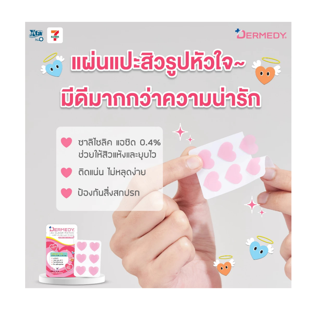 (1ซอง)แผ่นแปะสิว เดอร์มีดี เอซี เคลียร์ แพทช์ พลัสDermedy AC Clear Patch Plus And Mini Heart