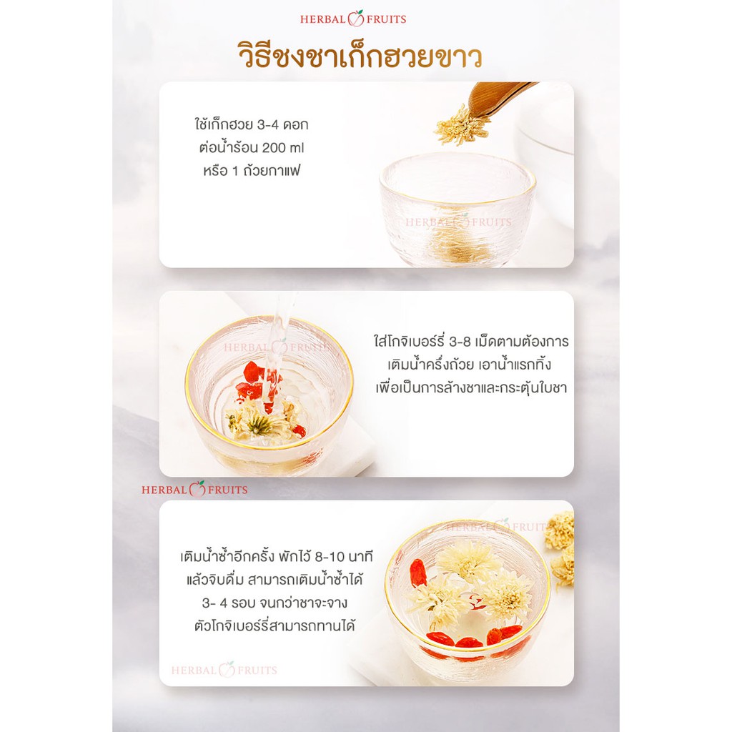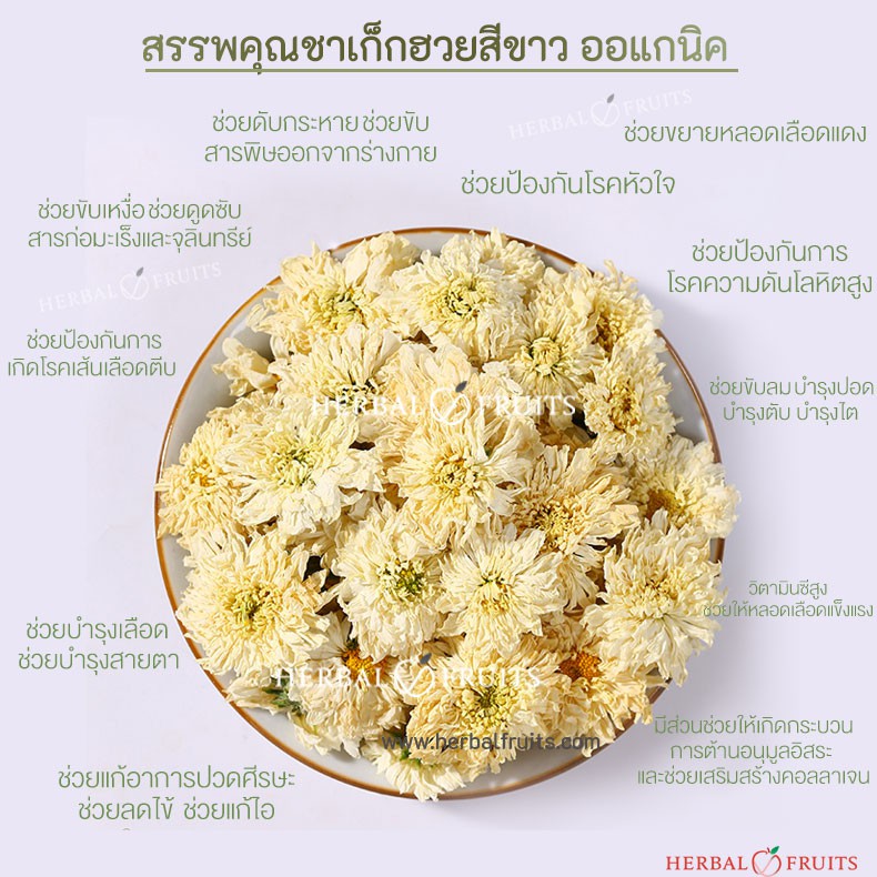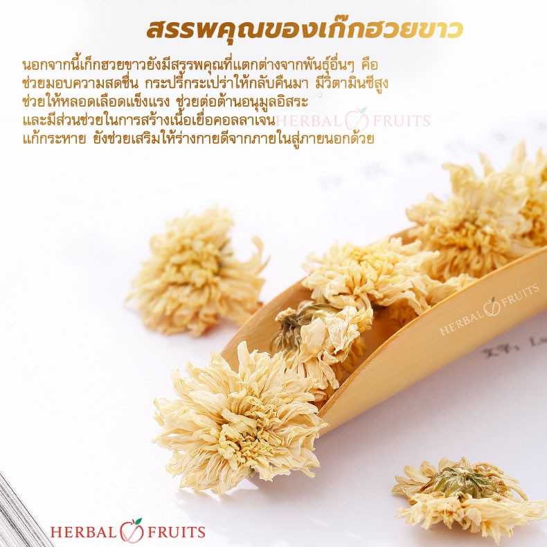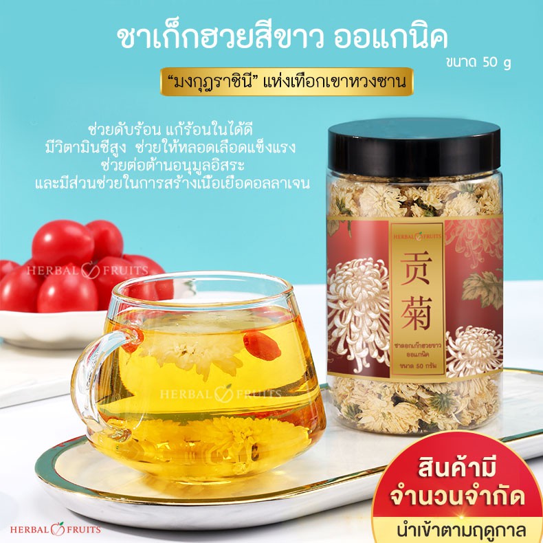 Herbal Fruits ชาดอกเก๊กฮวย พันธุ์ดอกขาว ออแกนิค ไม่แต่งกลิ่น สีและรส ปลอดสาร ขนาด 50 กรัม