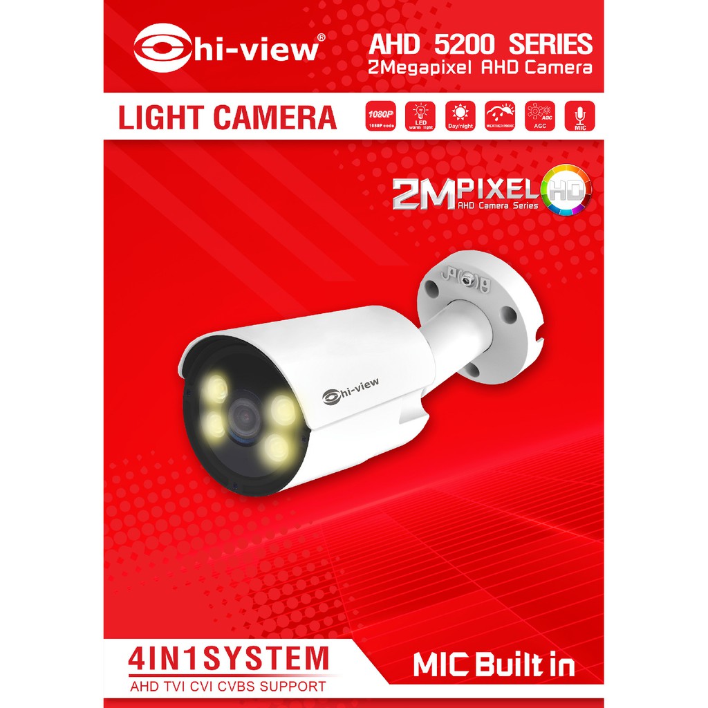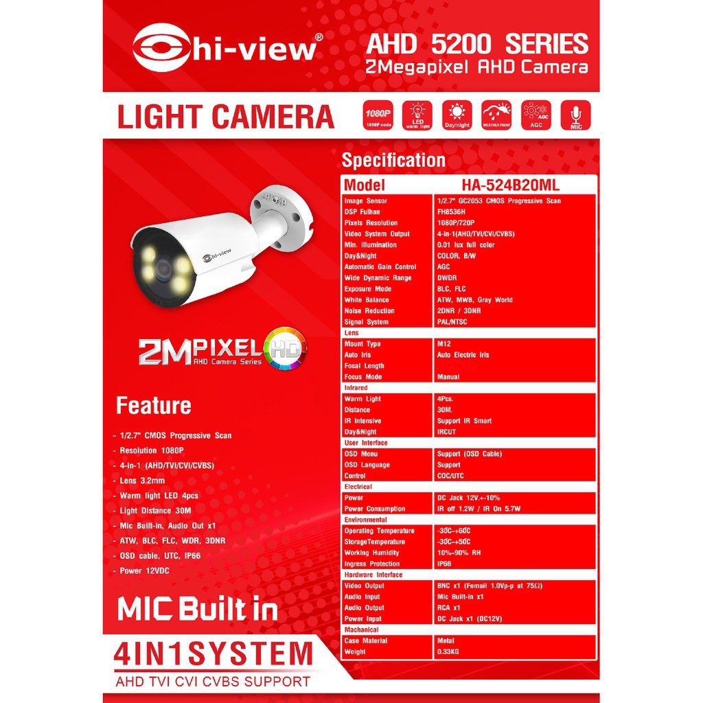 Hi-View กล้องวงจรปิด 2MP AHD Bullet Camera ภาพสี24ชม. มีไมค์ในตัว รุ่น HA-524B20ML