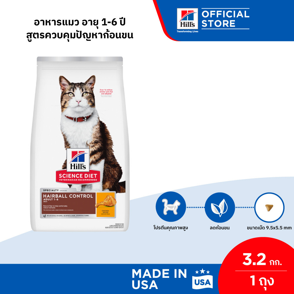 Hill's Science Diet อาหารแมว อายุ 1-6 ปี สูตรควบคุมปัญหาก้อนขน ขนาด 3.2 กก.