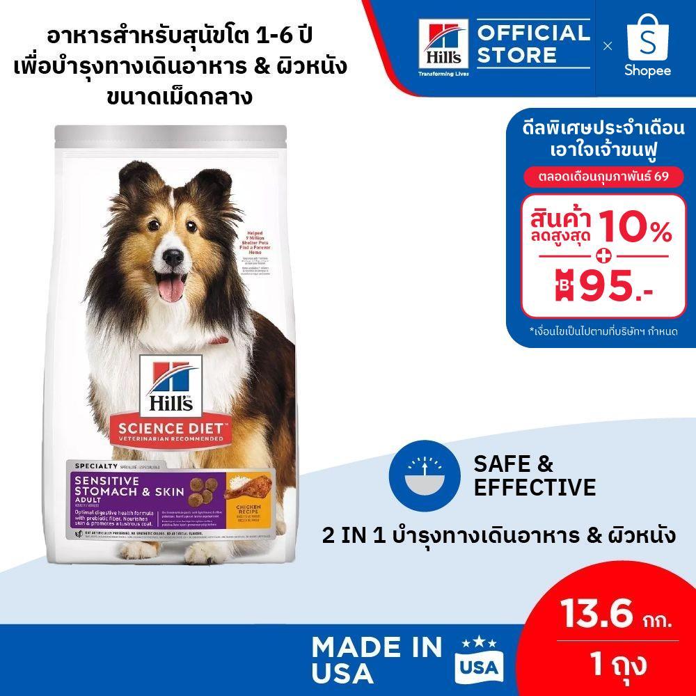 Hill's Science Diet Sensitive Stomach & Skin อาหารสุนัข อายุ 1-6 ปี สูตรทางเดินอาหารบอบบางและบำรุงขน 13.6 กก.